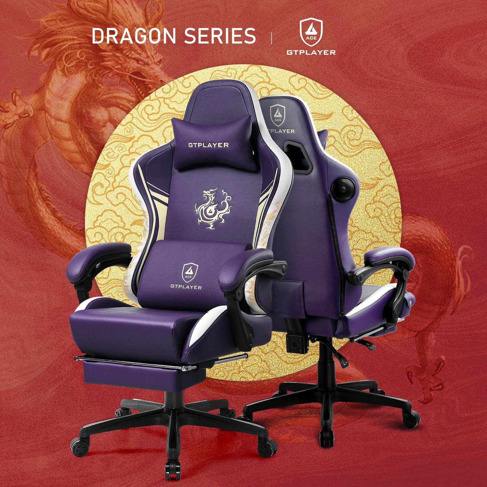 GTPLAYER Gaming Stuhl Gamer Stuhl mit Bluetooth-Lautsprechern und Fußstütze, Dragon Series Bürostuhl, Ergonomischer Gaming-Stuhl