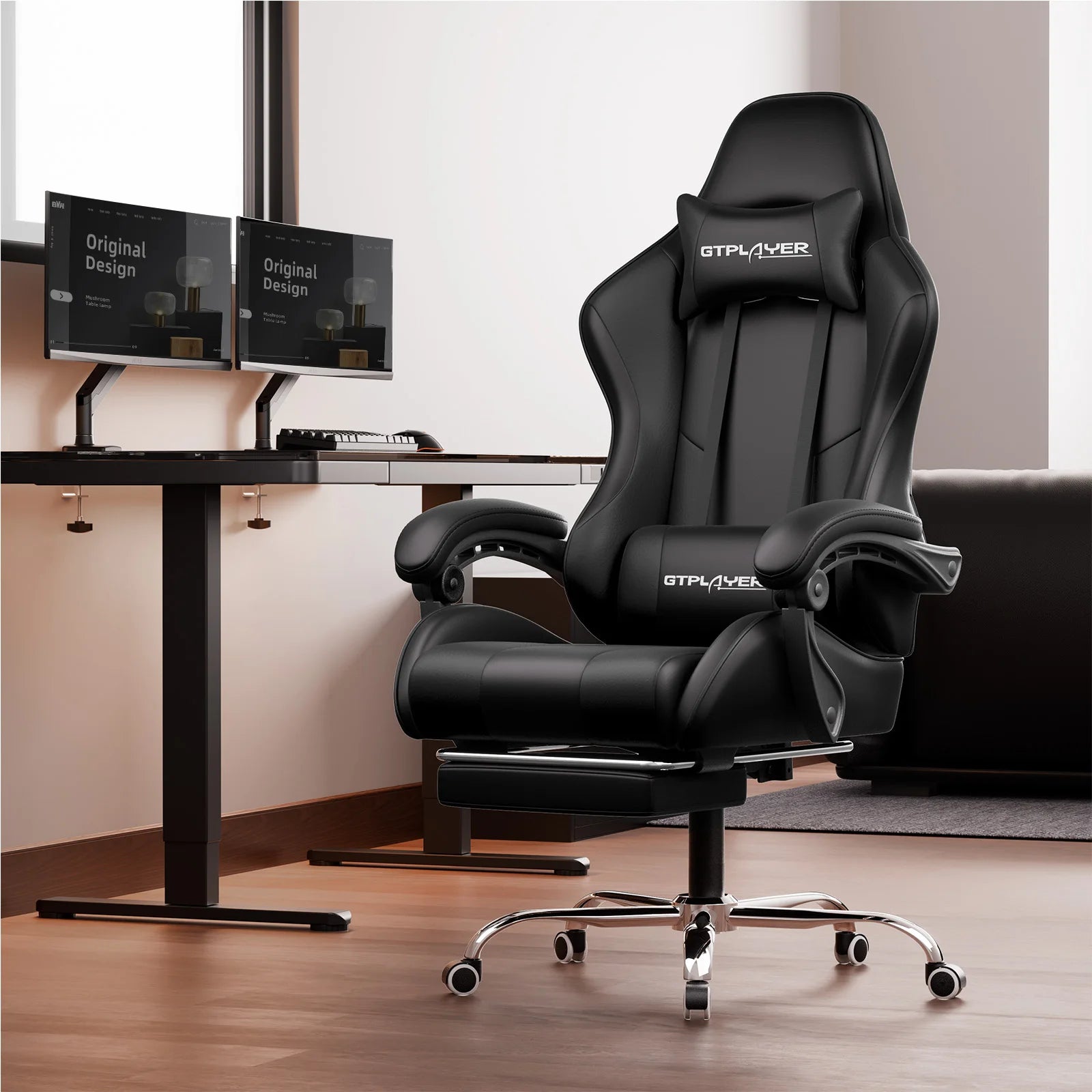 GTPLAYER Gaming Stuhl mit Massage, Ergonomischer Schreibtischstuhl mit Fußstütze, Kopfstütze, Drehstuhl für Büro und Gamer
