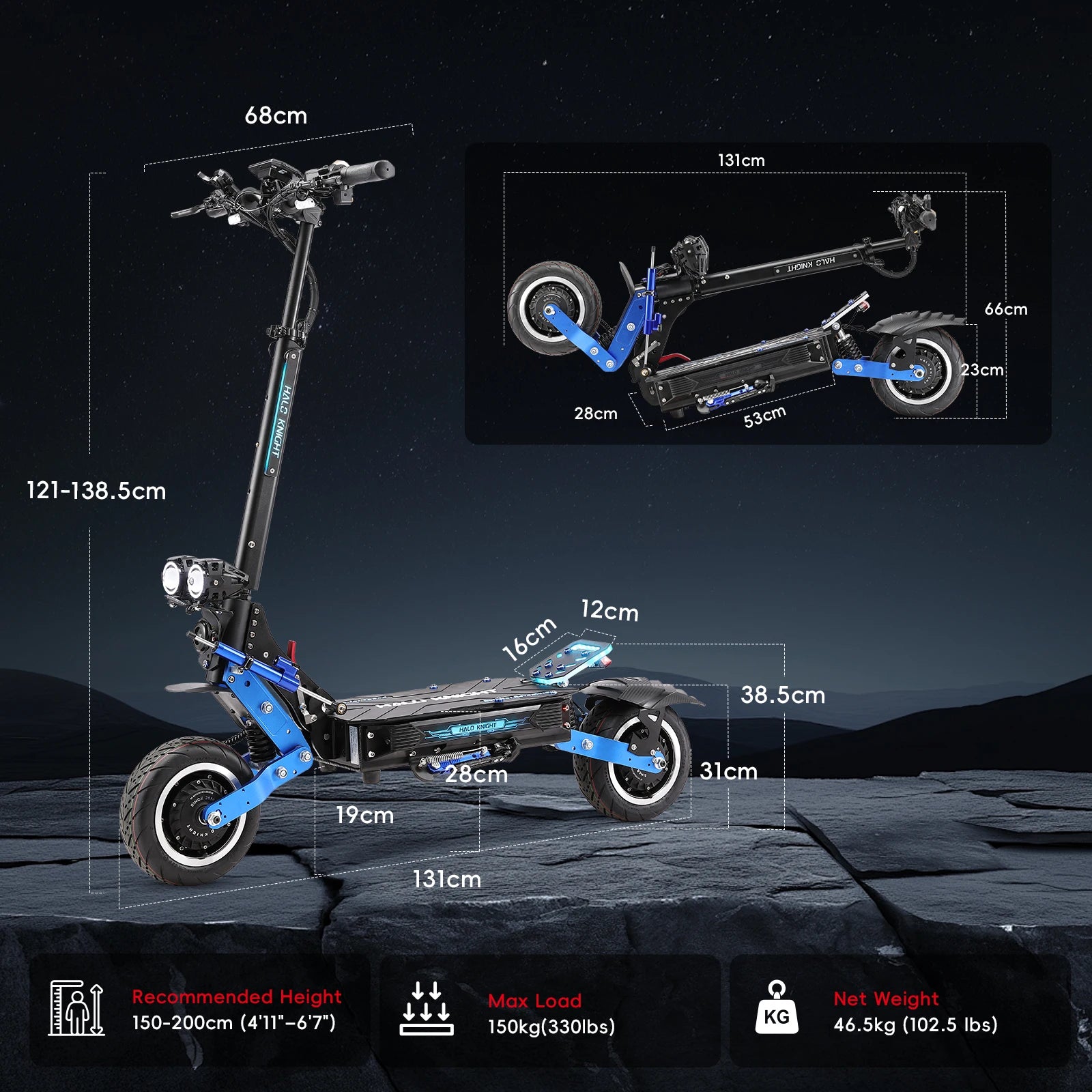 Recommended Rider Height: 150-200cm (4'11"–6'7")