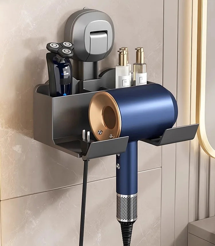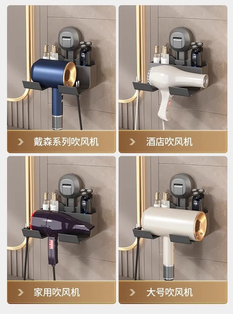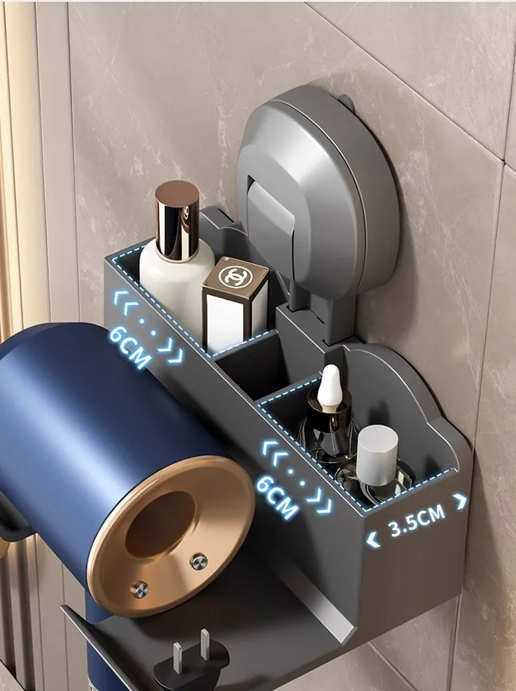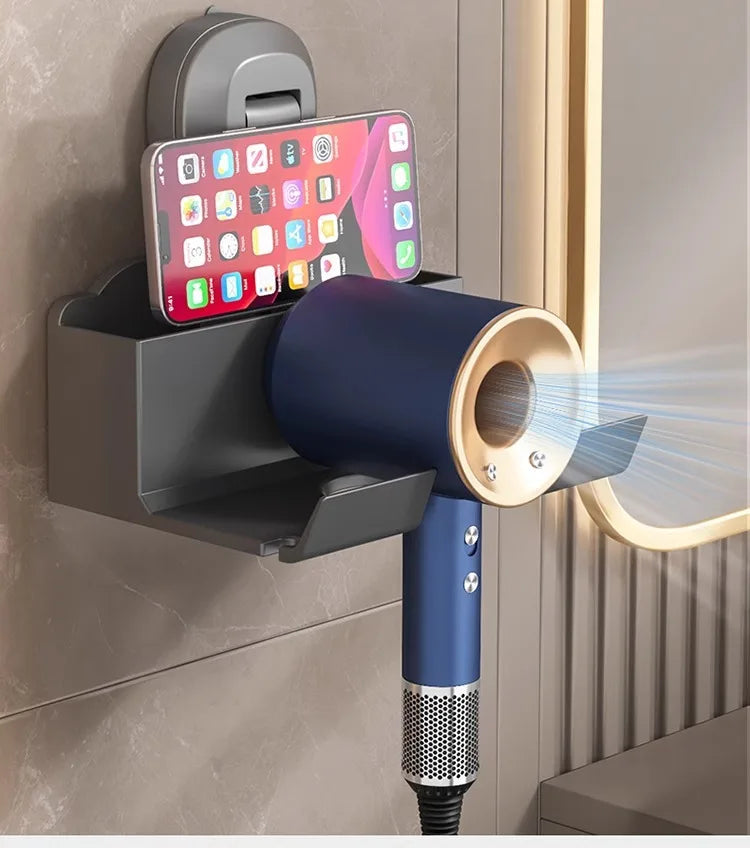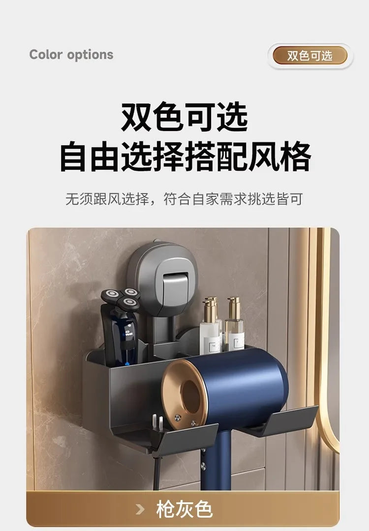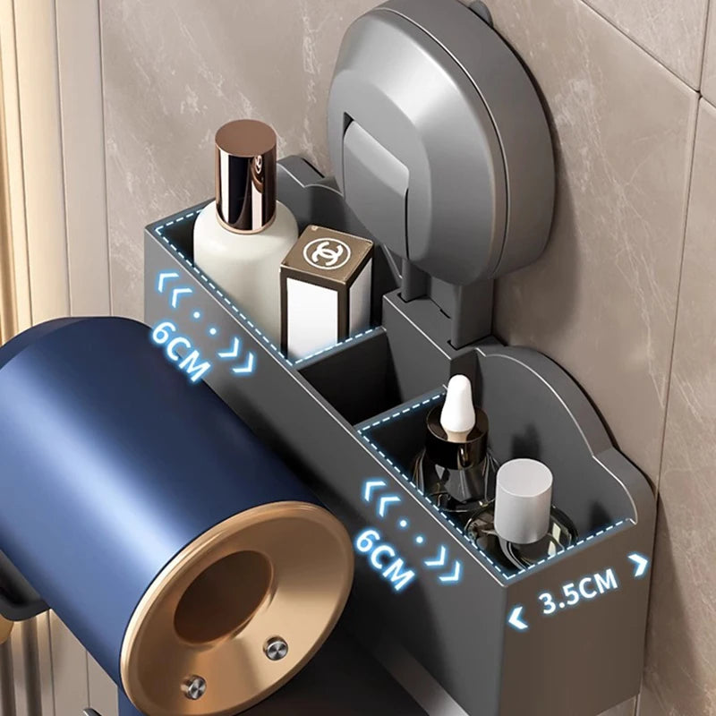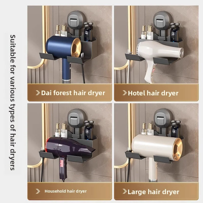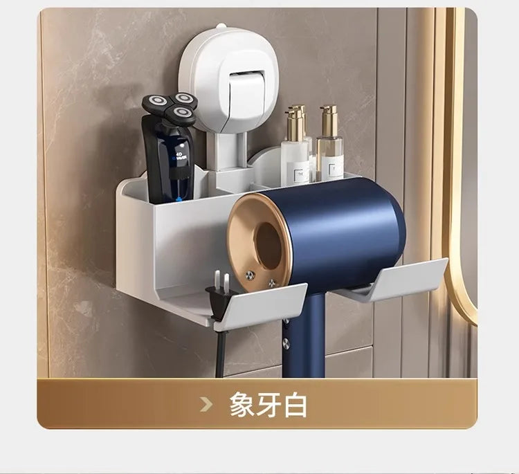 Halterung für Haartrockner, Aufbewahrungsregal mit Saugnapf, ohne Stanztoilette, Aufbewahrungsregal für das Badezimmer, Aufhänger für Haartrockner