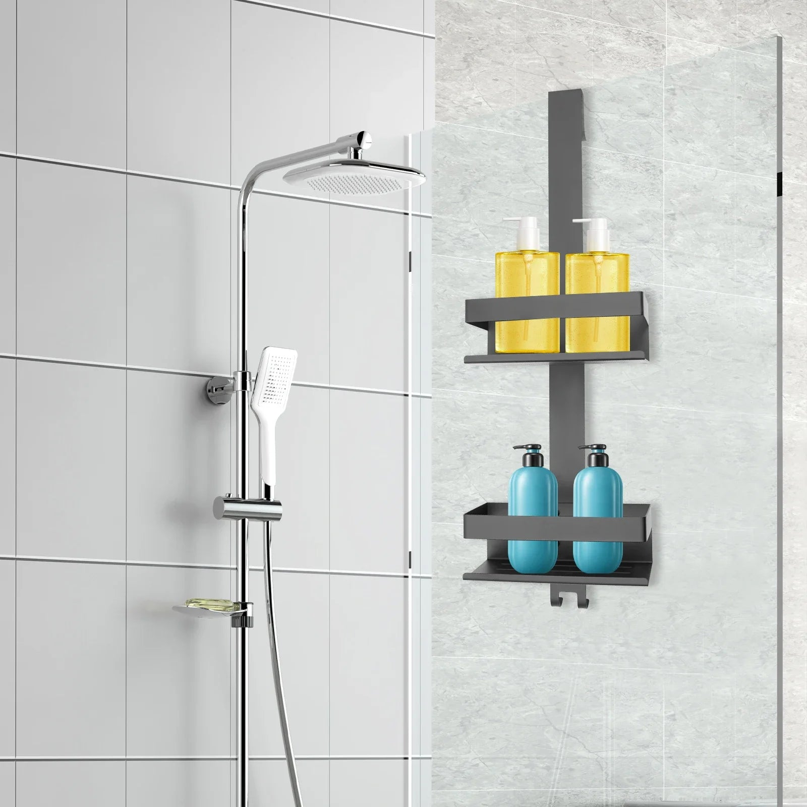 Hängendes 2-stufiges Duschregal, Badezimmerregal, 304 Edelstahl, für Küche, Wohnzimmer, Balkon