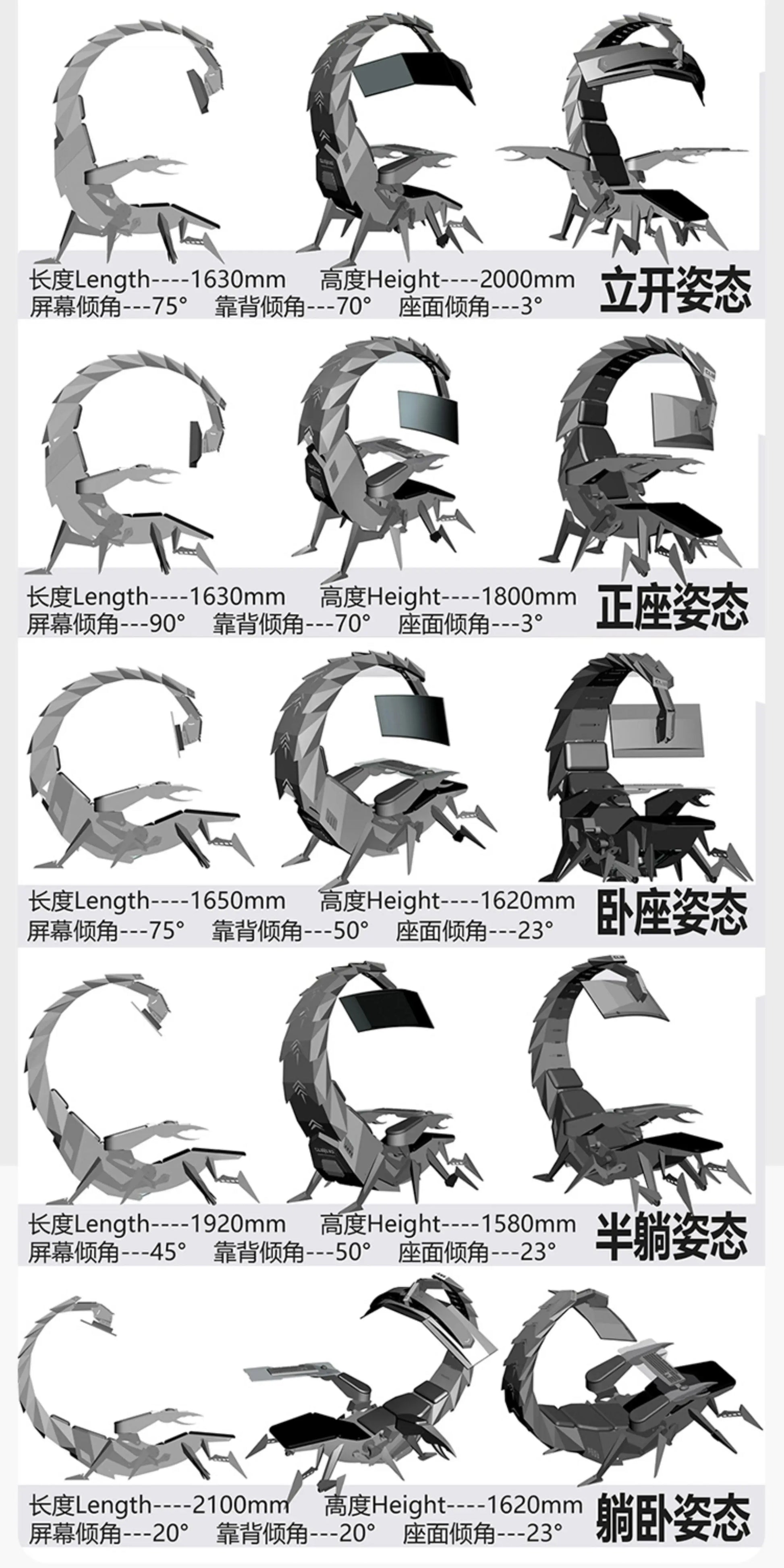 Heiße Luxus-Home-Office-Möbel Zero Gravity Großhandel Computer Cluvens Gaming-Stuhl Scorpion Chair für 3 oder 5 Monitore