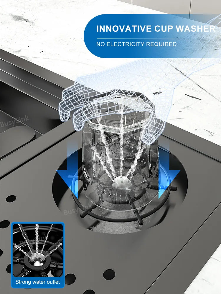 Hidden Cup Washer kitchen Sink Stainless Steel Small Bar Single Slot Washbasin Multifunctional With Cover Plate Dishwashing Pool
