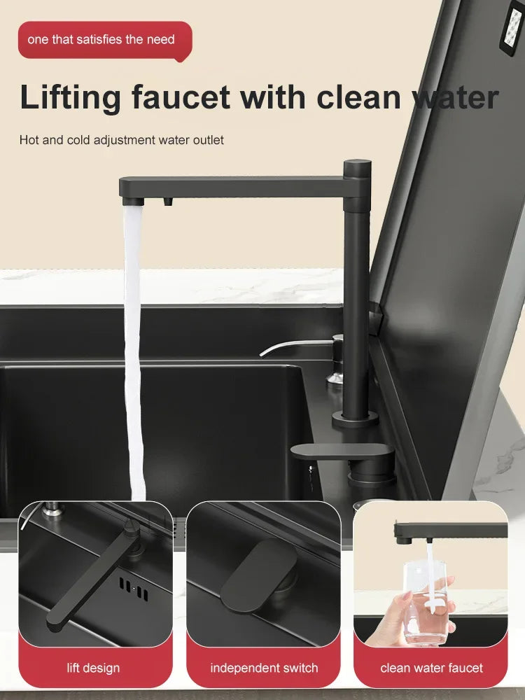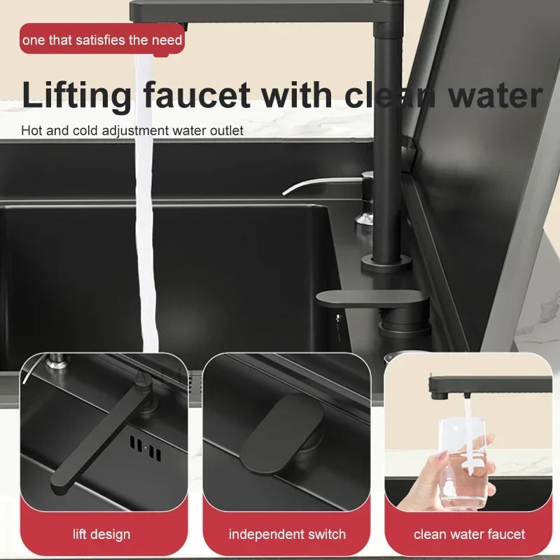 Hidden Cup Washer Sink With Cover Kitchen Sink Stainless Steel Washbasin Multifunctional Large Single Slot For Kitchen