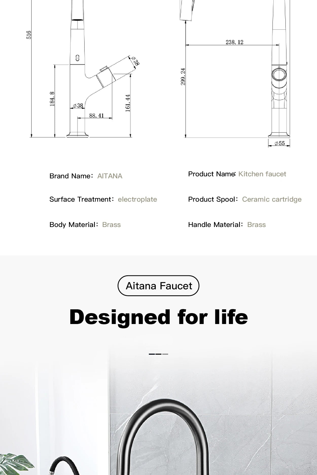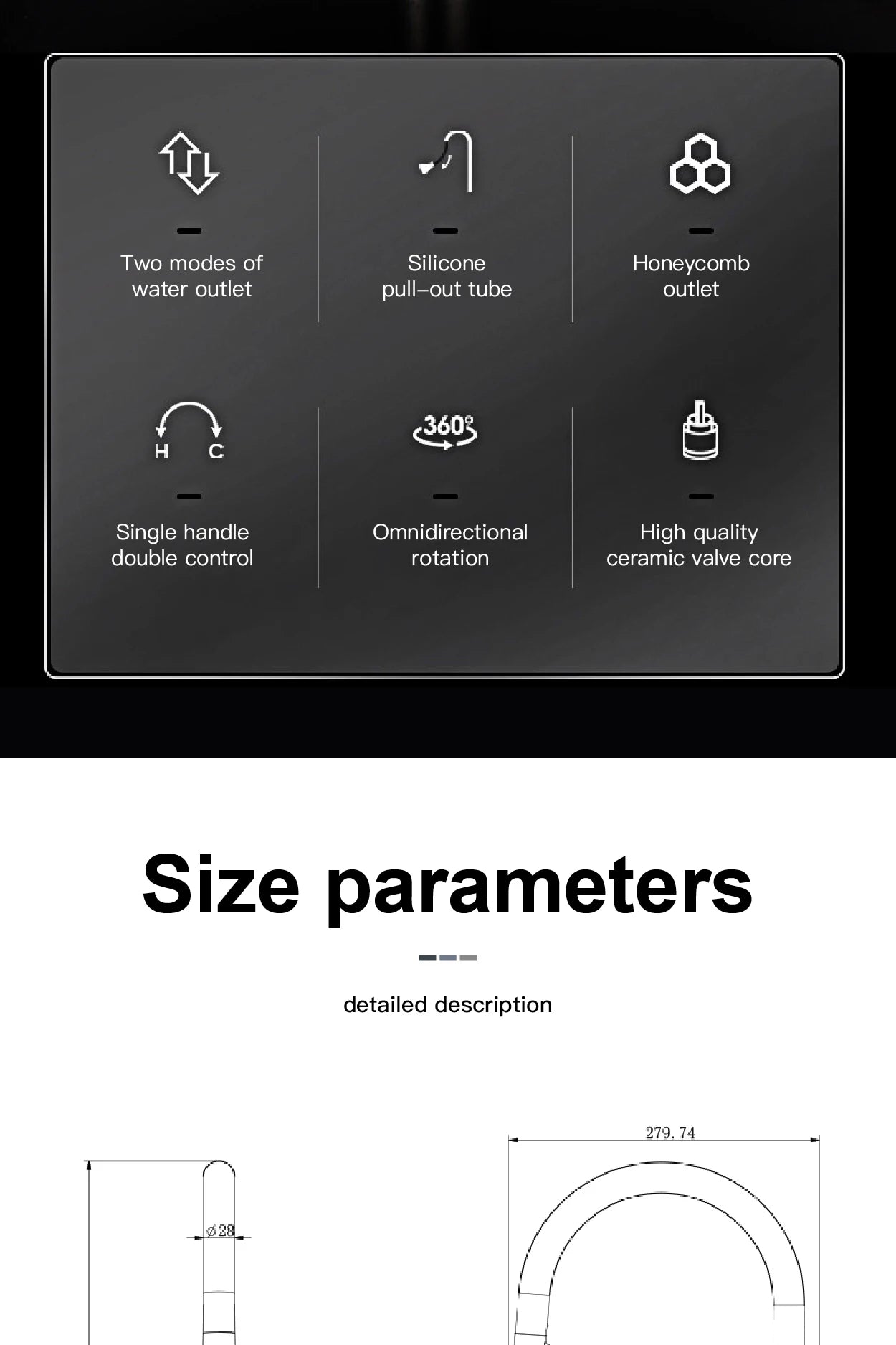 High-end gun gray brass kitchen faucet induction design single handle cold and hot dual control 2 function simple sink faucet