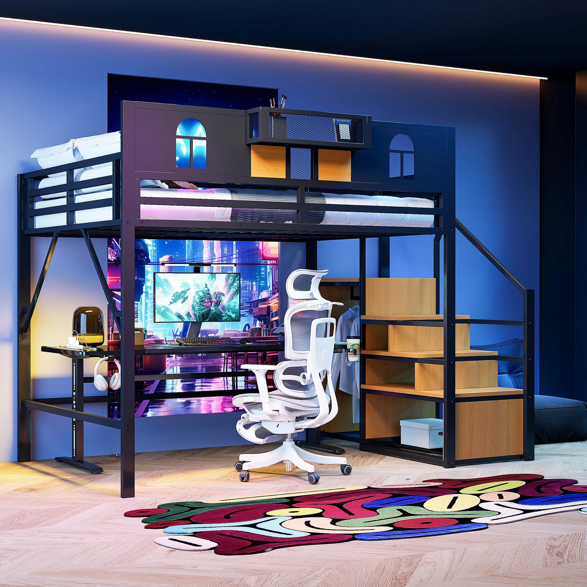 Hochbett 140x200 Jugendbett ohne Matratze mit einzigartige Erhöhte Umzäunung,Bettgestell mit Ablagefläche Am Bett