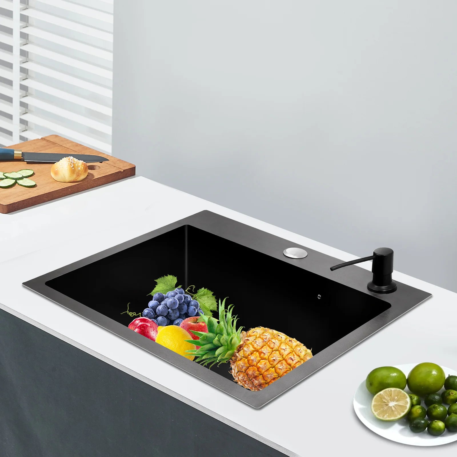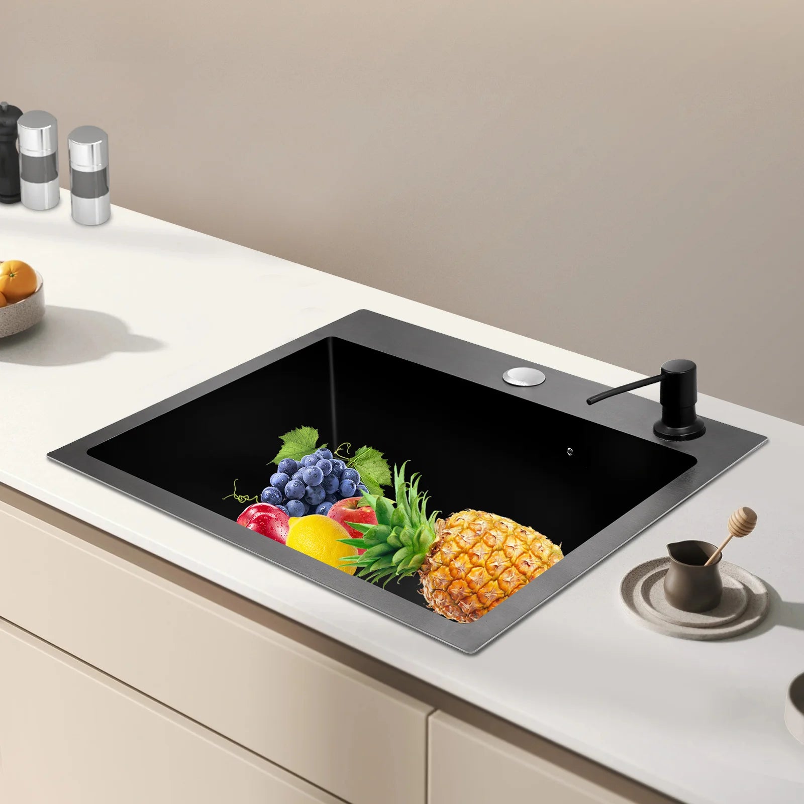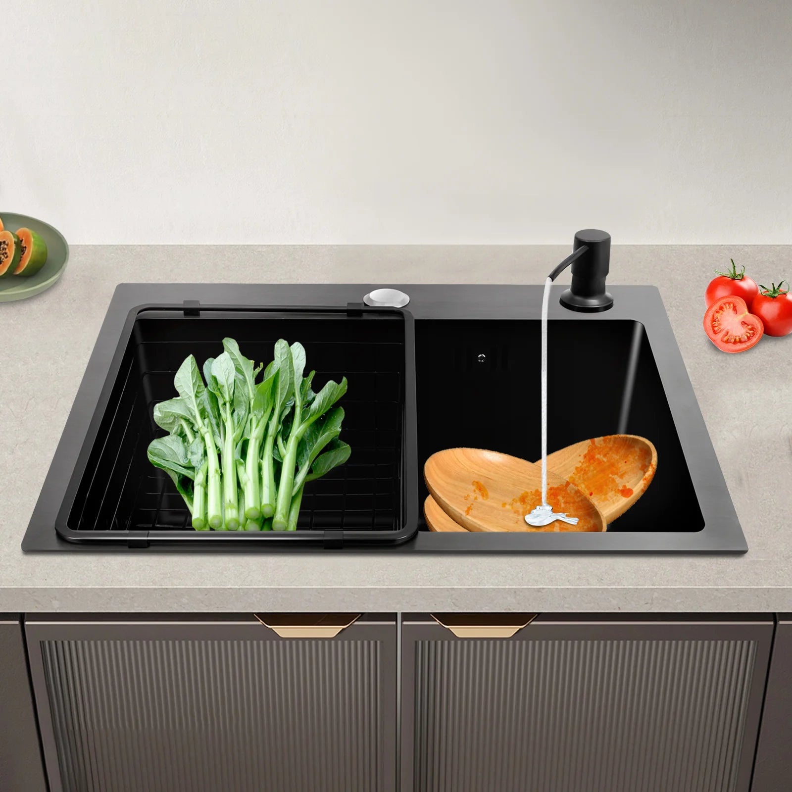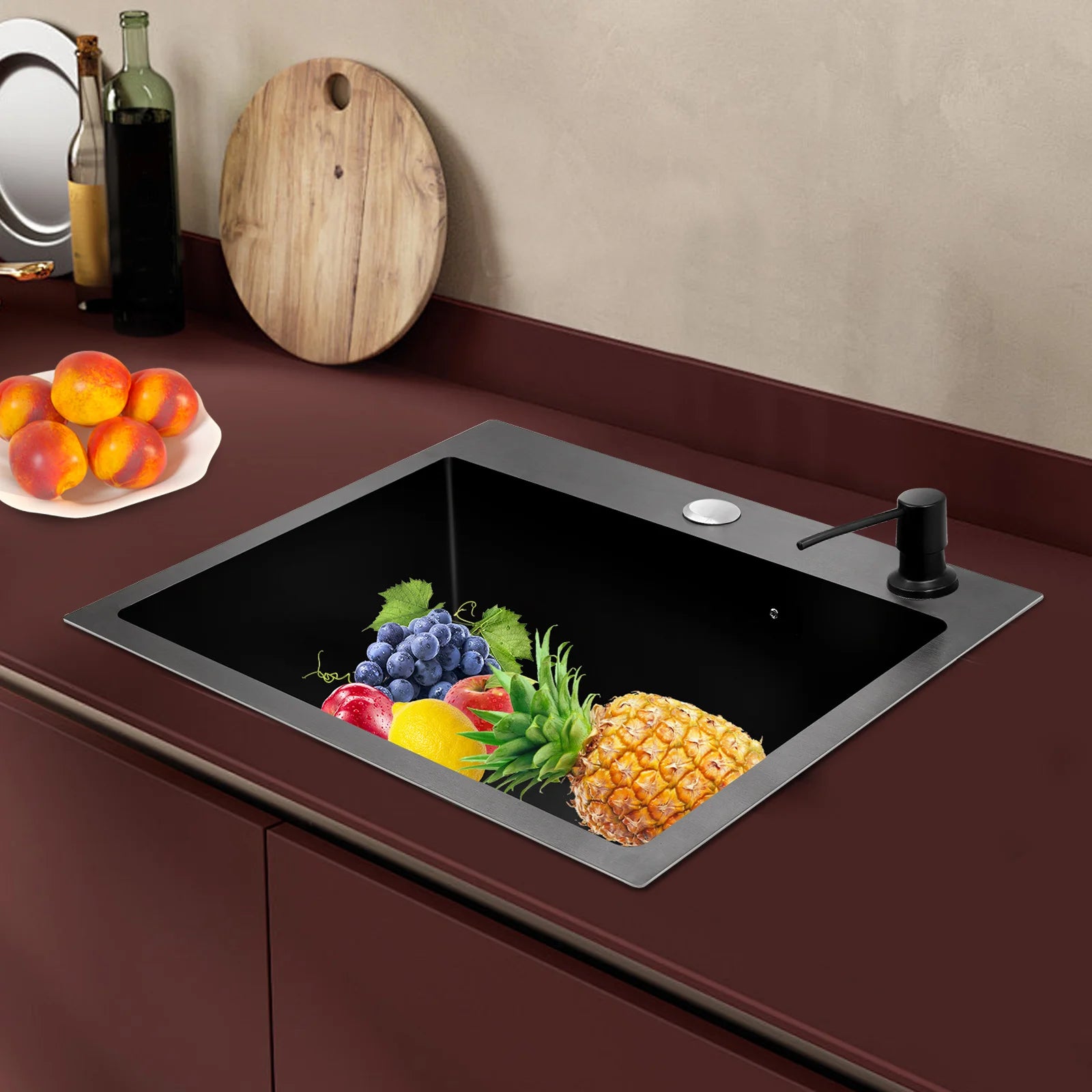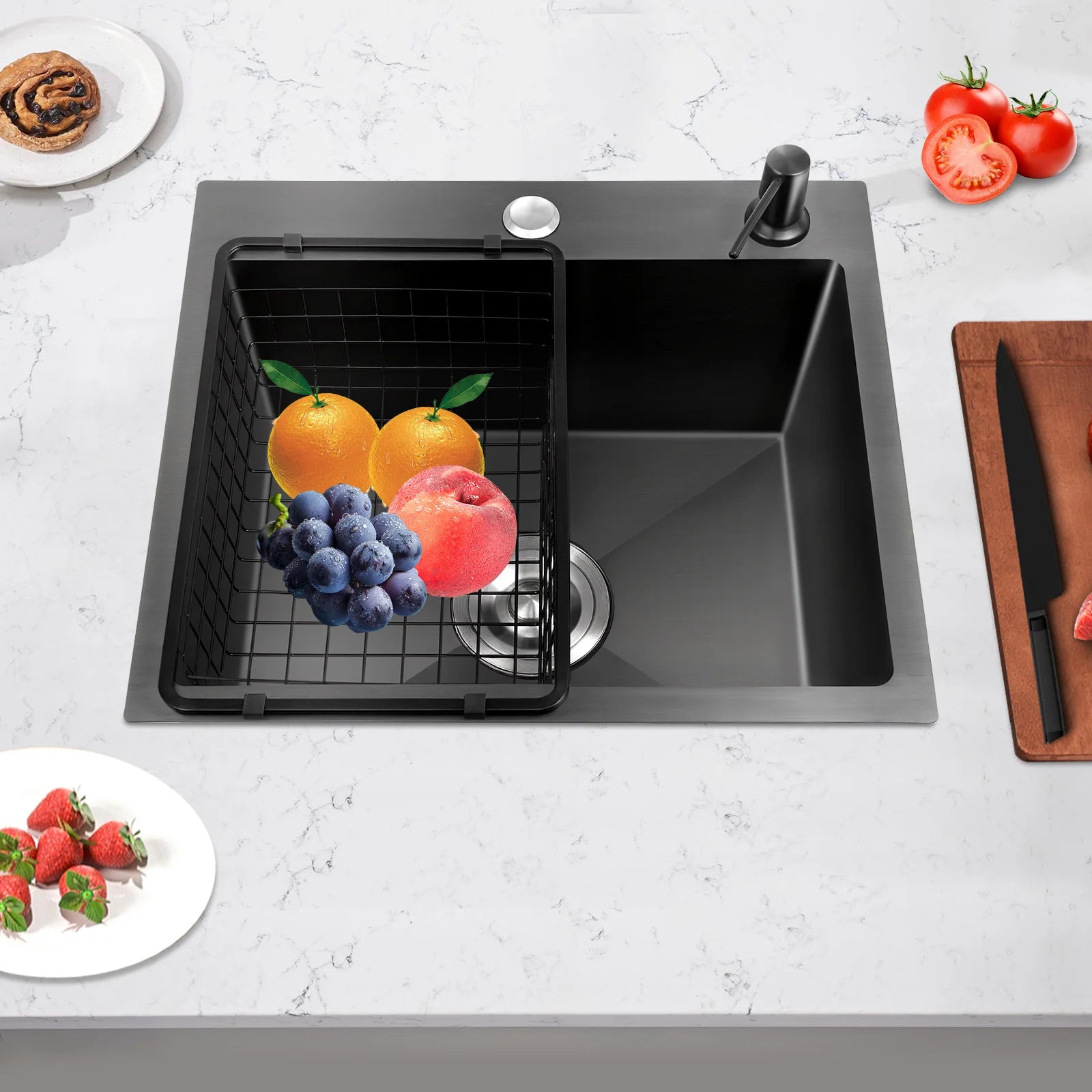 Hochwertiges Küchenspülbecken-Komplettset, 45 x 40 x 20 cm, langlebiges, großes Fassungsvermögen-Reinigungsspüle aus Edelstahl 201, schwarze Spüle mit einer einzigen Schüssel