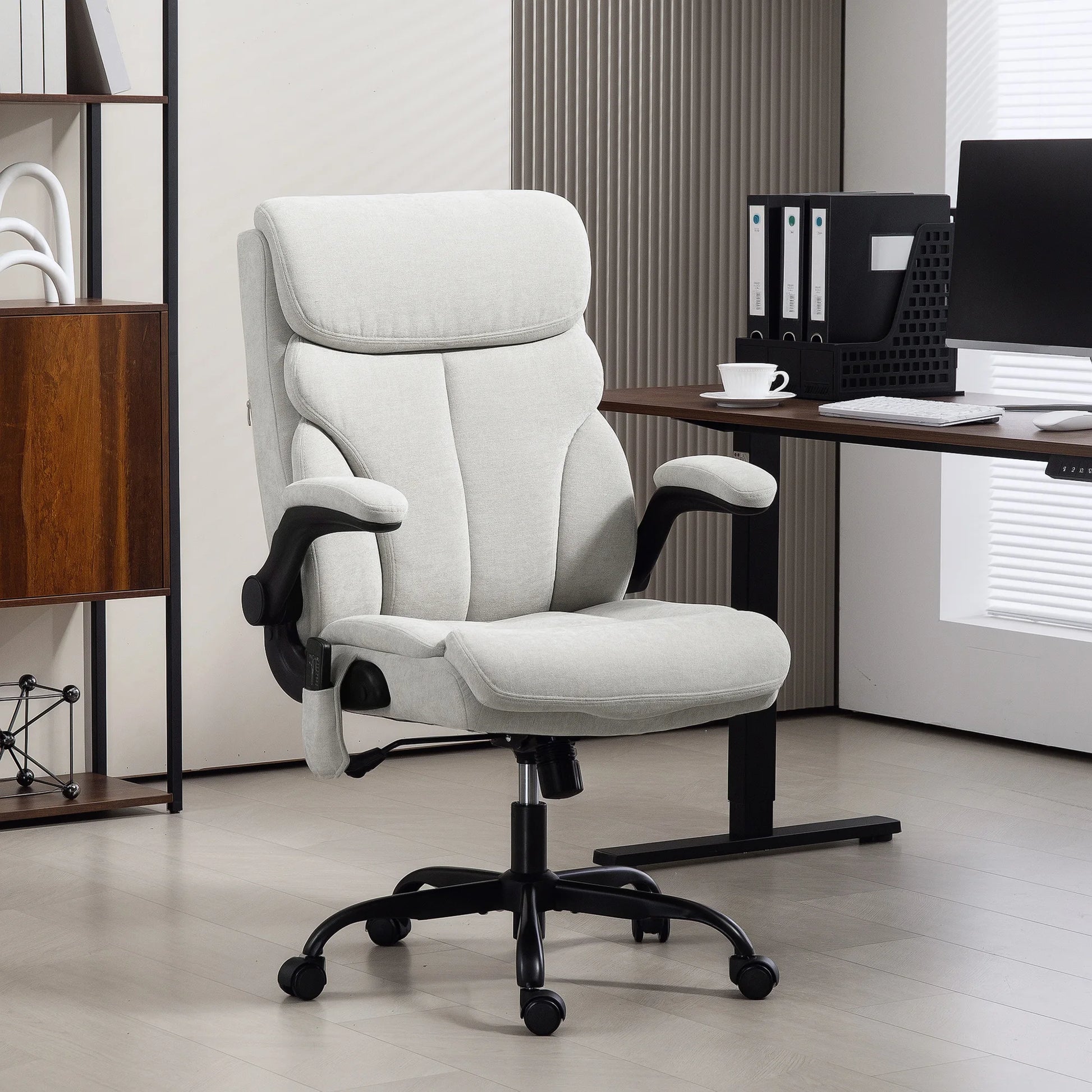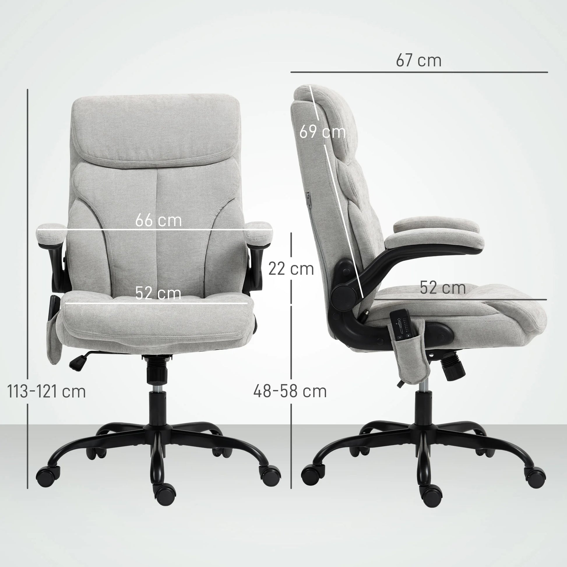 HOMCOM Bürostuhl mit Massage- und Heizfunktion, drehbarer Schreibtischstuhl mit höhenverstellbarer Klapparmlehne, hoher Rückenlehne und grauer Fernbedienung