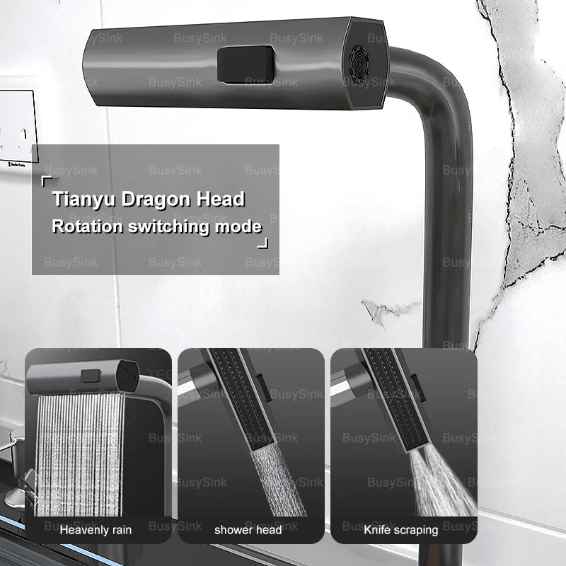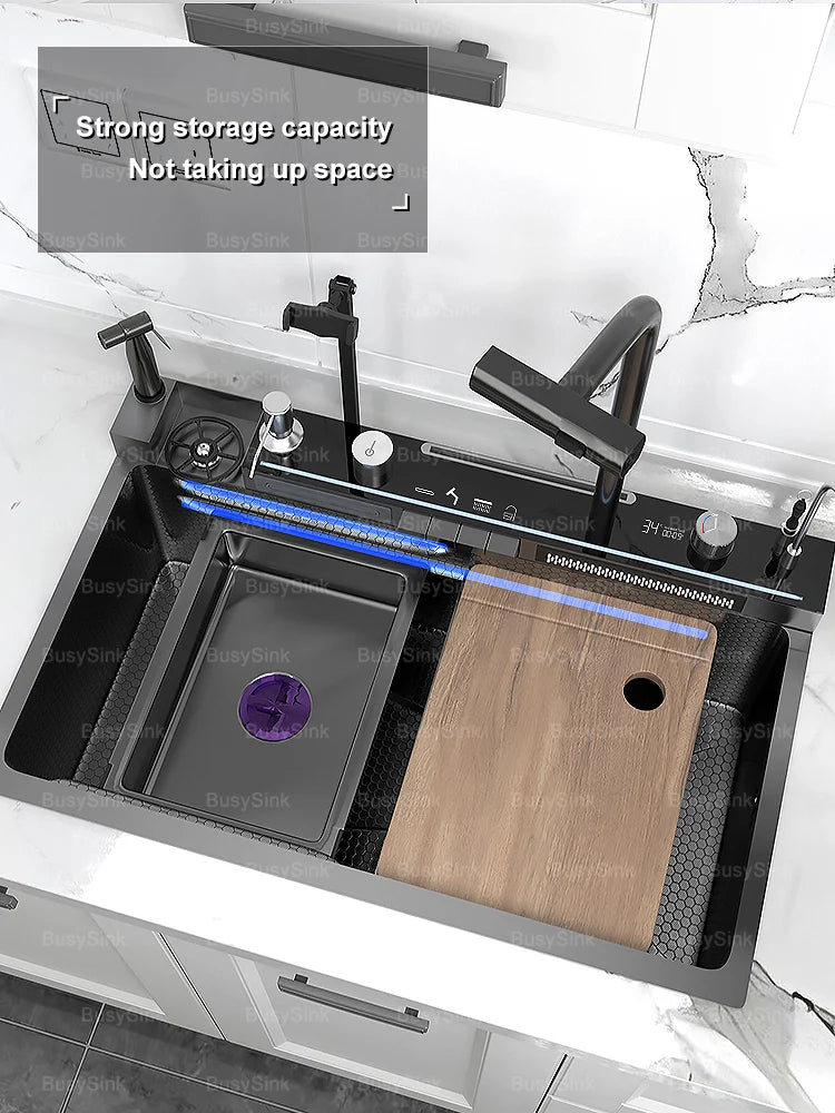 Household Digital Display Piano Button Waterfall Faucet Stainless Steel Kitchen Sink Large Single Bowl Multifunctional Wash Slot
