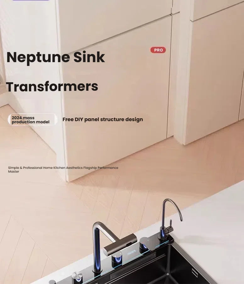 Intelligent Waterfall Stainless Steel Kitchen Sink MultiFunctional Digital Display Porous Large Single Slot Wash Dish Basin