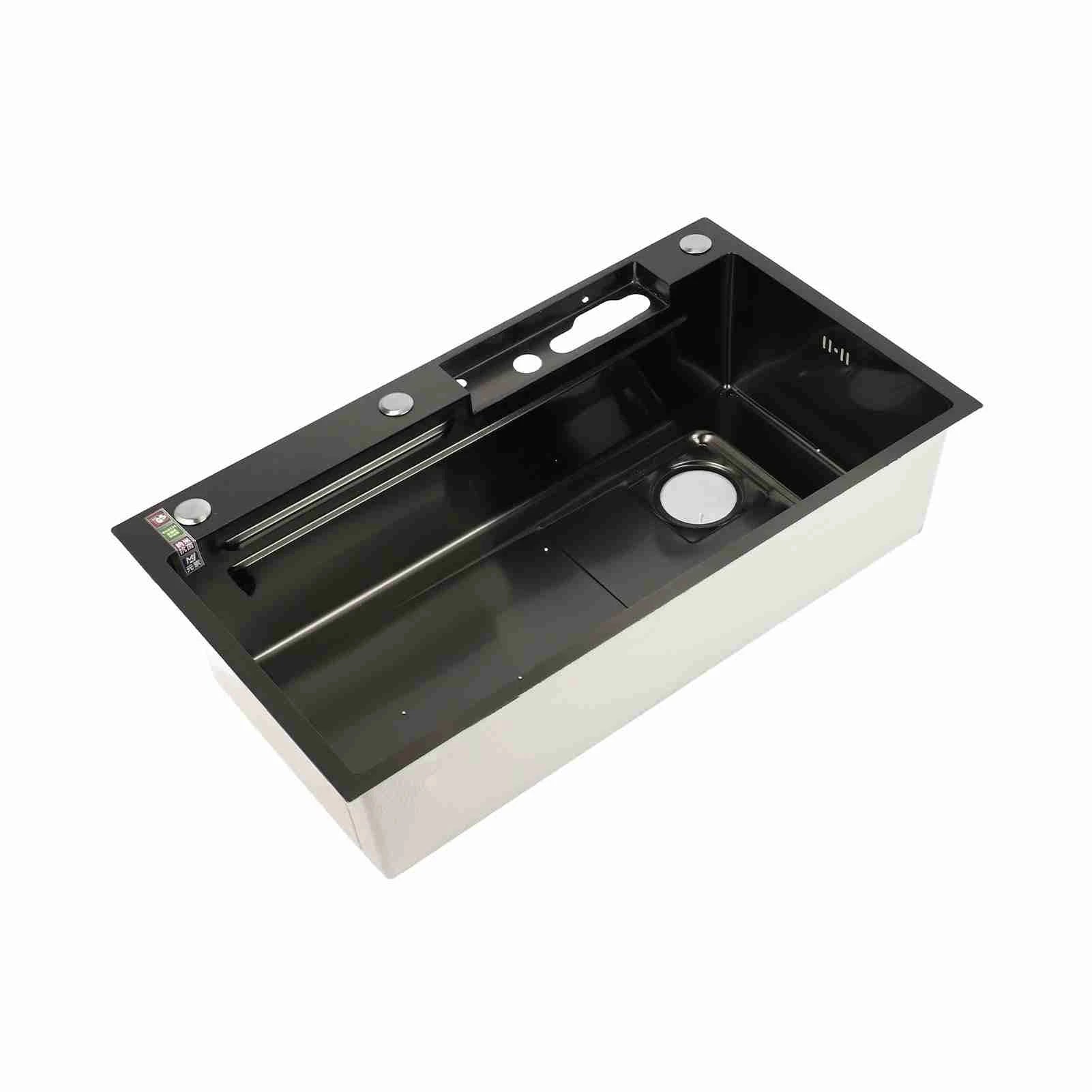 Intelligente Küchenspüle aus Edelstahl, verdickte gebürstete Oberfläche, großes Fassungsvermögen, Waschbecken mit Digitalanzeige, Küchenspüle