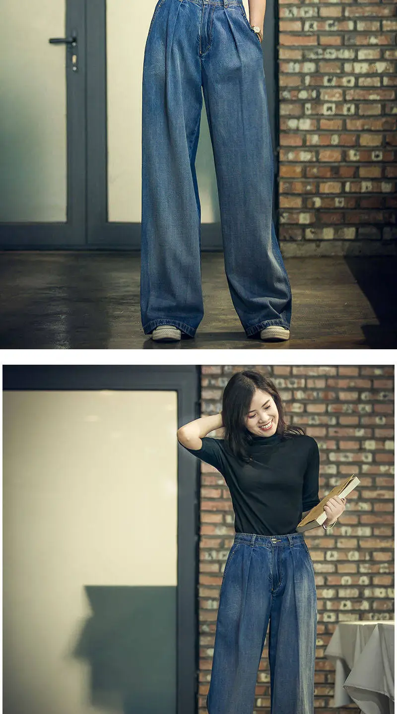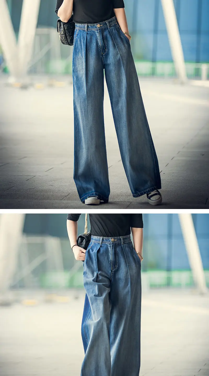 Jeans Women'S Wide-Leg Jeans 2022 Y2K Streetwear High Waist Vintage Trousers Casual Simple Blue Buttons Straight Denim Long Pant