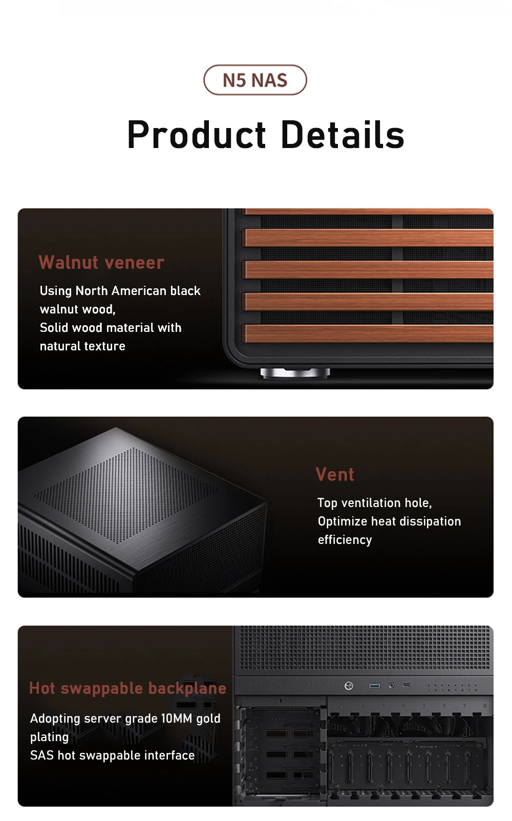 Jonsbo N5 NAS Computer Chassis ITX/M-ATX/ATX/E-ATX PC Case 12+4 Hard Disk Space ATX Power Supply With Fan Aluminum Desktop Case