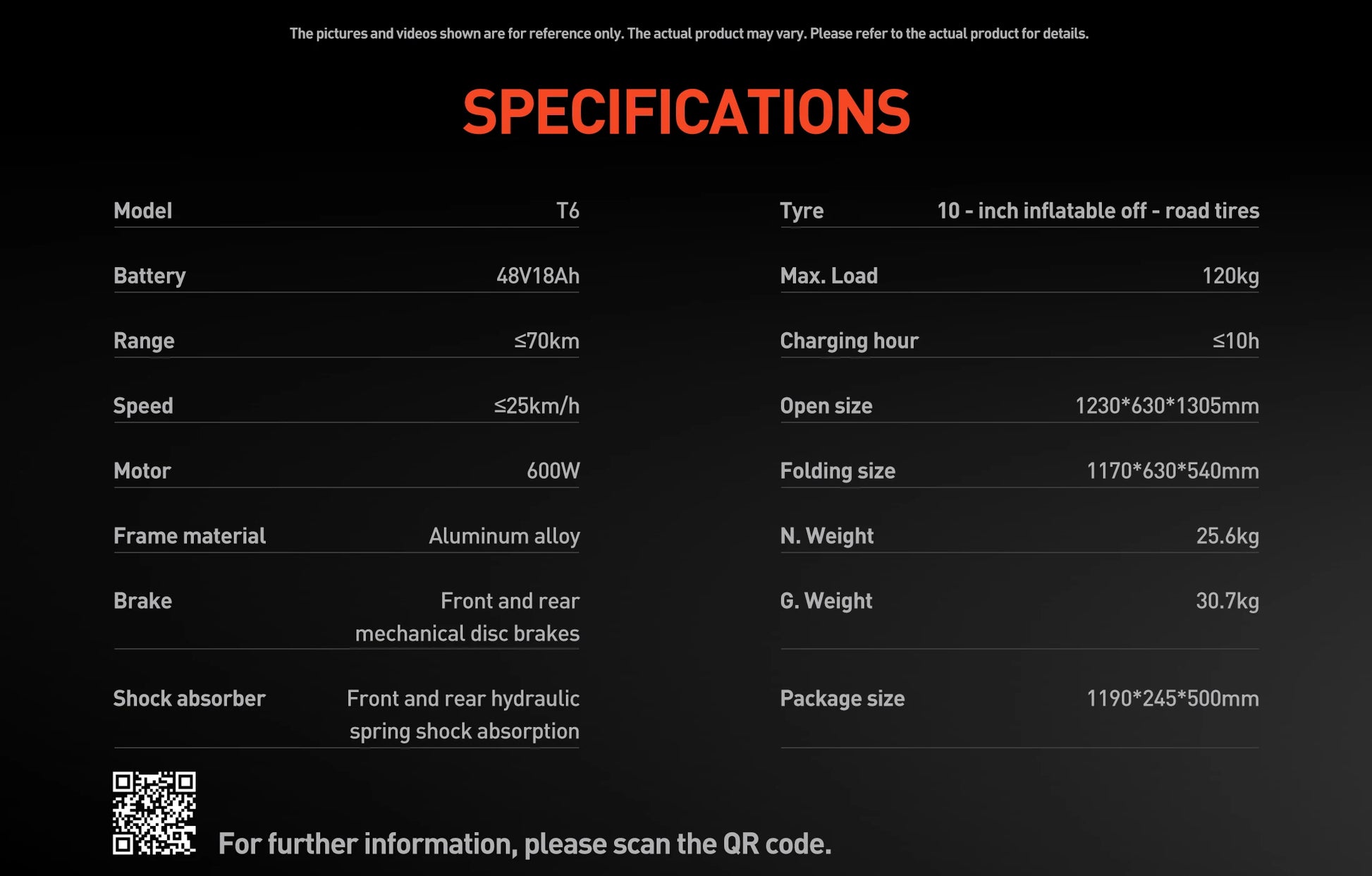 JOYOR T6 Adult Electric Scooter 600W Motor 48V18AH Battery E-Mountain Escooter 10" Off-Road Tire Foldable E-Scooter