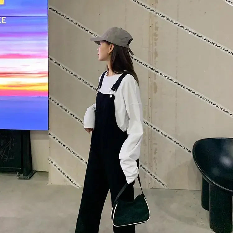 Jumpsuits Women Solid Retro Japanese Style Streetwear Denim Suspenders Trousers Harajuku Stylish Hip Hop Straight Overalls Teens