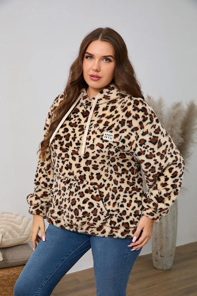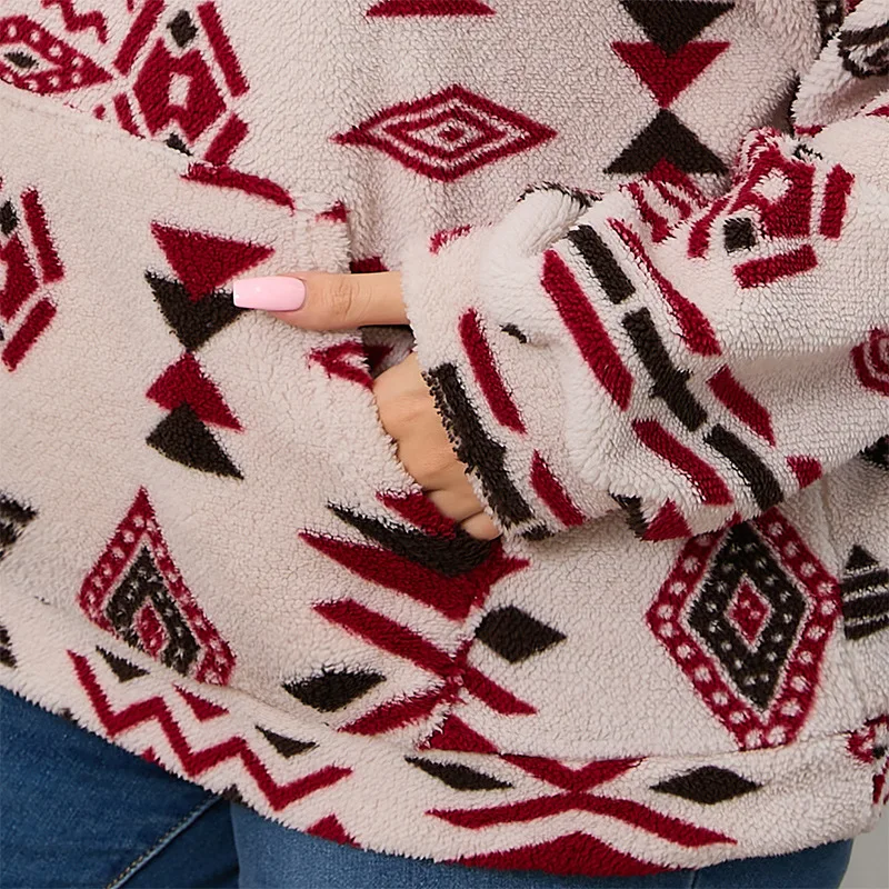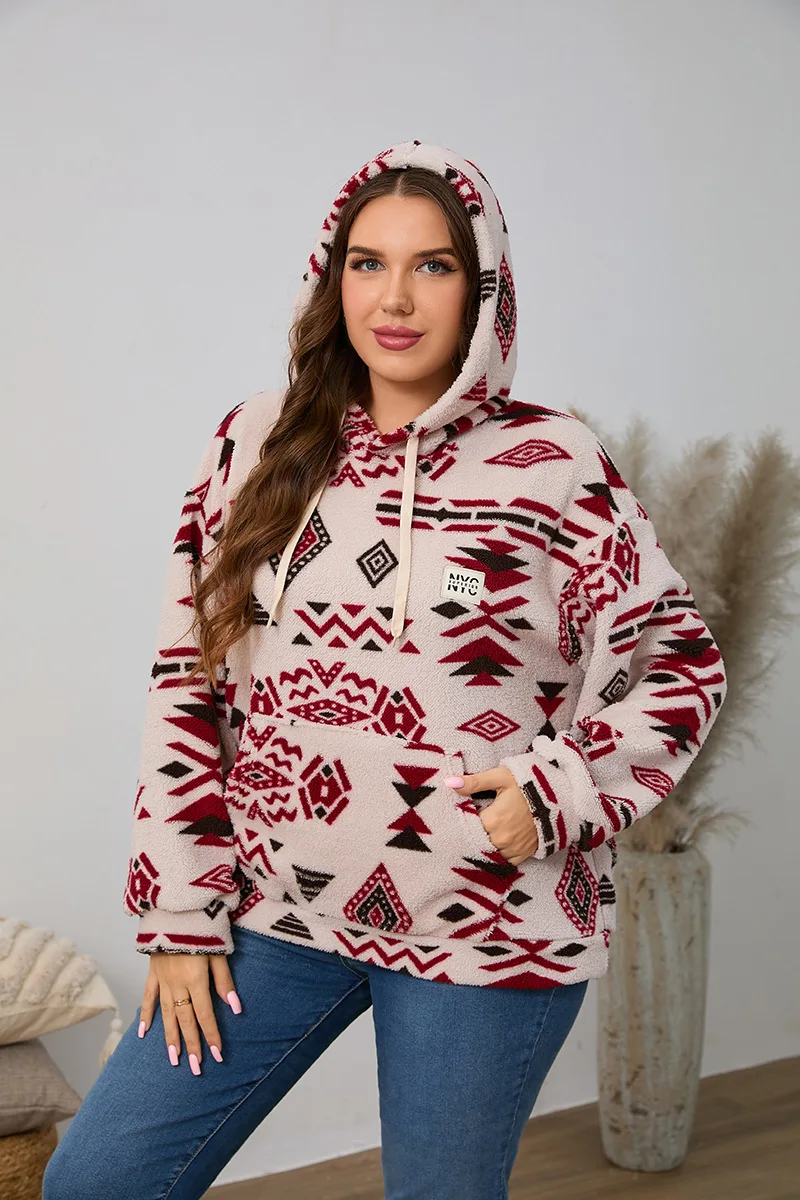 Kapuzenpullover für Damen, große Größe, Reißverschluss-Sweatshirts, ethnischer Druck, flauschiger Streetwear-Pullover, Herbst-Winter-Rollkragenpullover