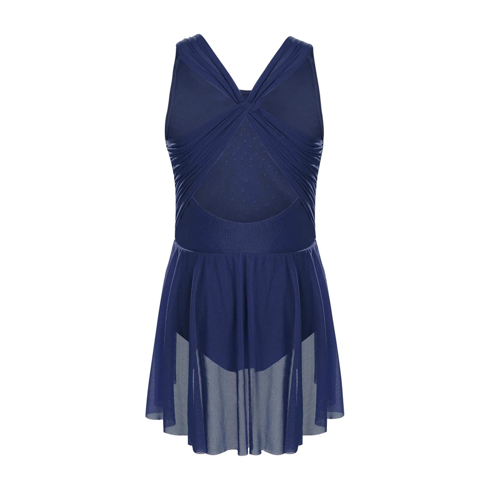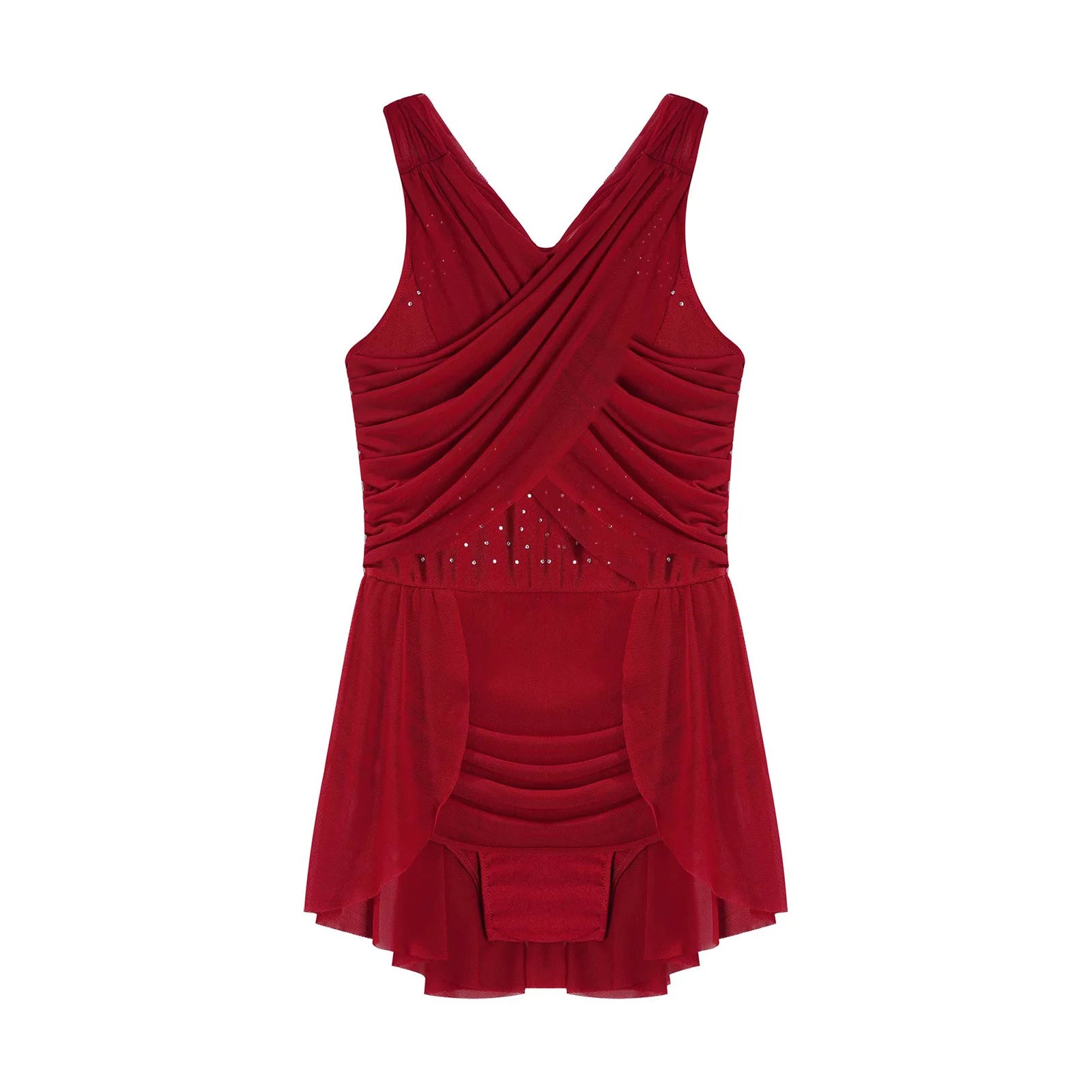 Kinder Mädchen Ärmellose Ausschnitt Strass Eiskunstlauf Trikot Kleid Lyrical Dance Gymnastik Akrobatik Leistung Kostüm
