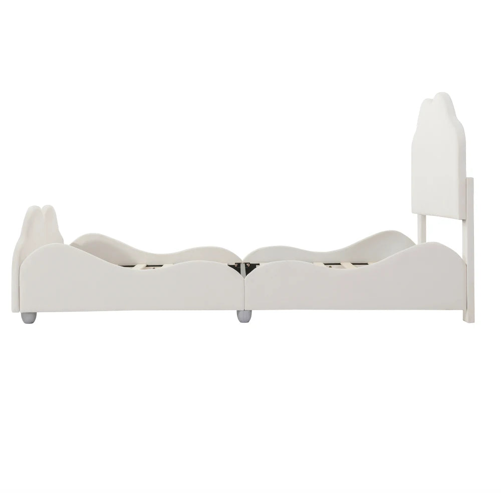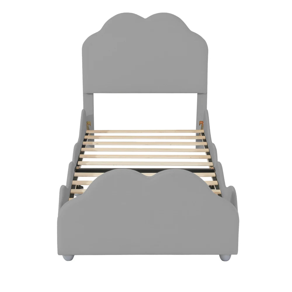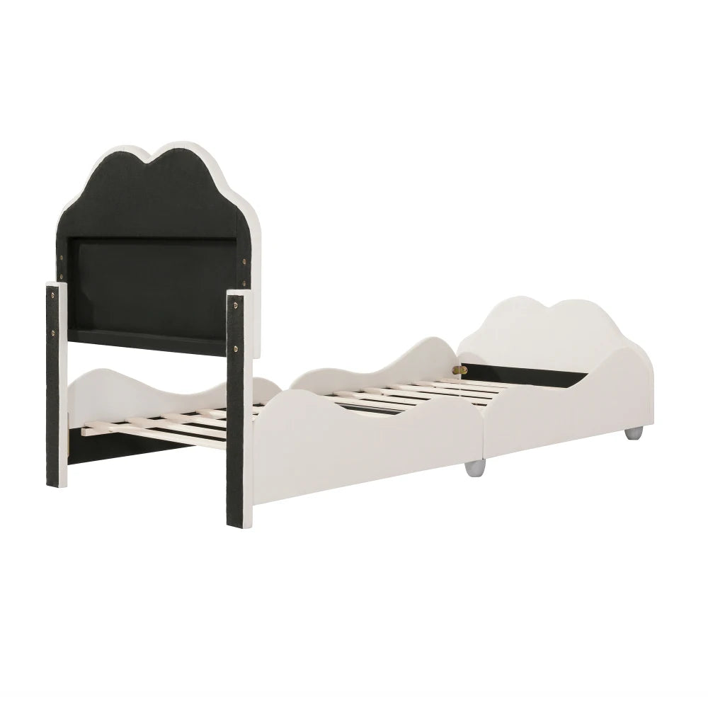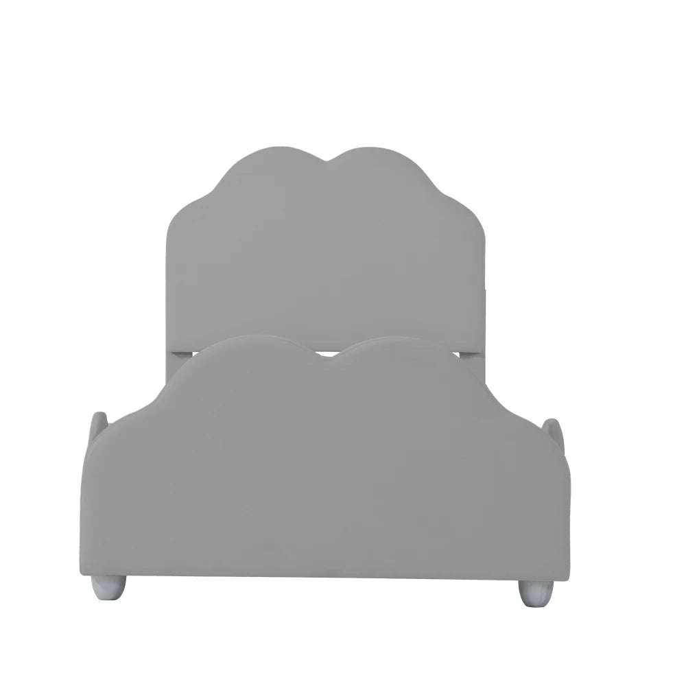 Kinderbett 90 x 200 cm hohes Geländer, Kinderbettgestell mit wolkenförmigem Kopf und Fußteil, Bett aus hautfreundlichem Samt