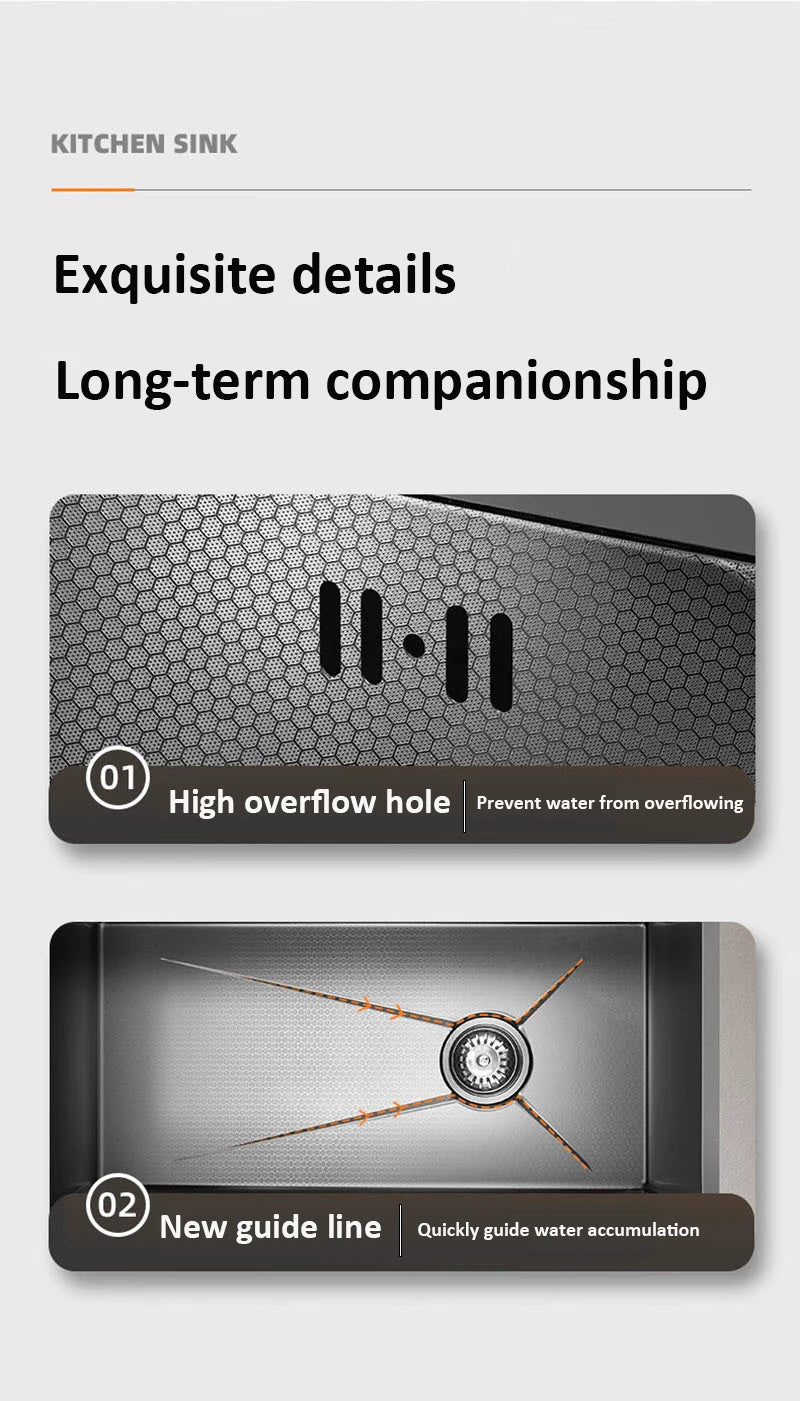 Kitchen Basin Stainless Steel Waterfall Sink Large Single Slot Integrated Digital Display Faucet Set Soap Dispenser Cup Washer