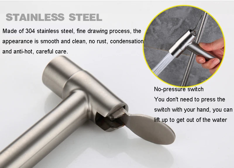 Kitchen Faucet Stainless Steel Double Hole Hot and Cold Mixing Tap Wall Mount Balcony Laundry Swivel Tap With Spray Gun 주방수전