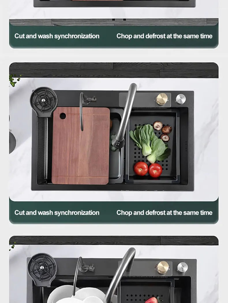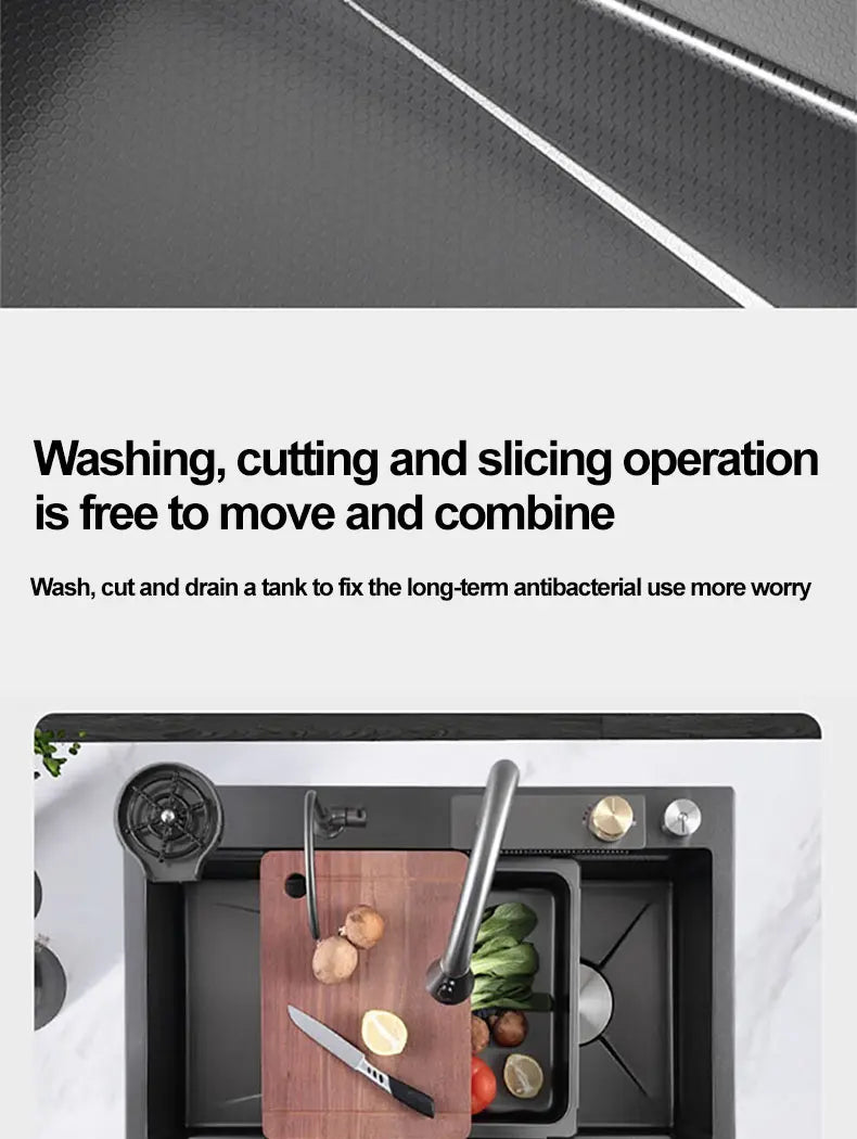 Kitchen Sink 304 Stainless Steel Rain Waterfall Single Trough Honeycomb Large Single Trough Washing Basin