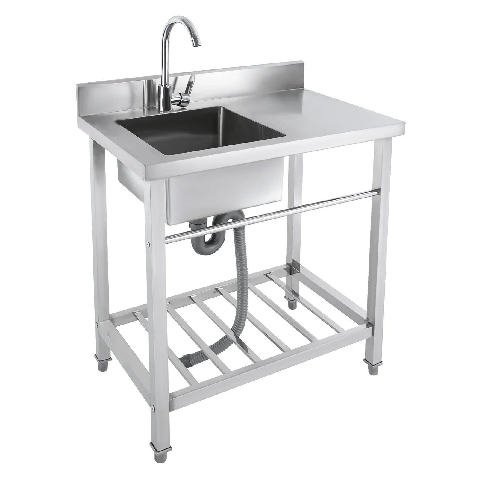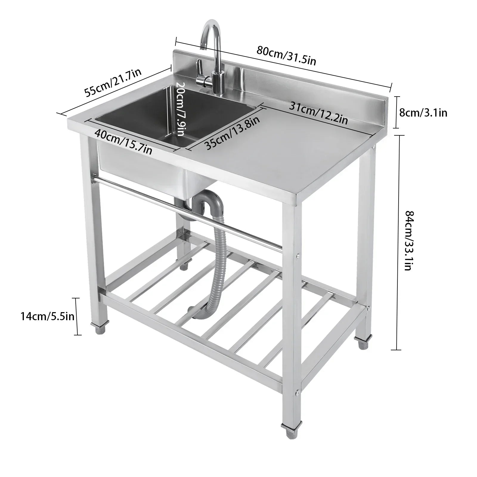 Kitchen Sink with Base Cabinet, Stainless Steel Sink 80 cm Wide with Trim, Freestanding Sink with Tap, Drain Hose, Kitchen Sink