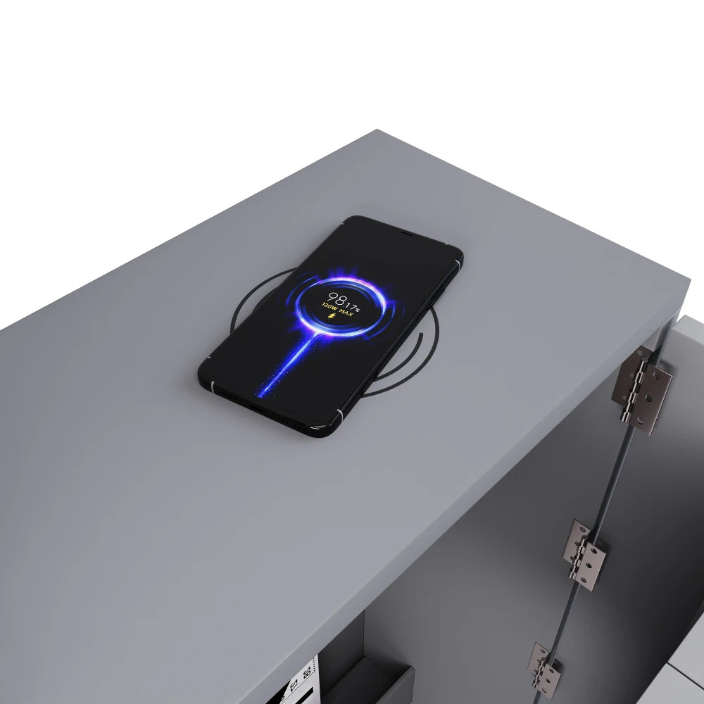 Klappbarer Schreibtisch mit Rollen und kabellosem Ladegerät – 2-in-1-Sideboard und Arbeitsplatz, mit Regal und Kippschutz, Rollen mit Bremstisch