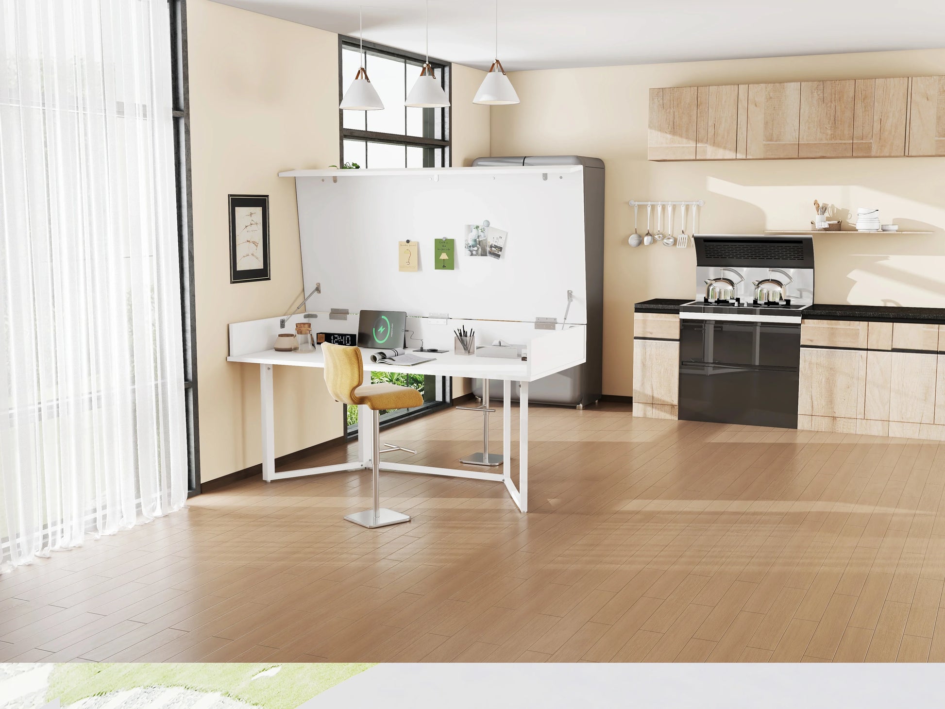 Klappbarer Schreibtisch – Multifunktional, faltbar, mit europäischen Steckdosen, Muschel-Design zum Verstecken des Unordnunges auf dem Schreibtisch