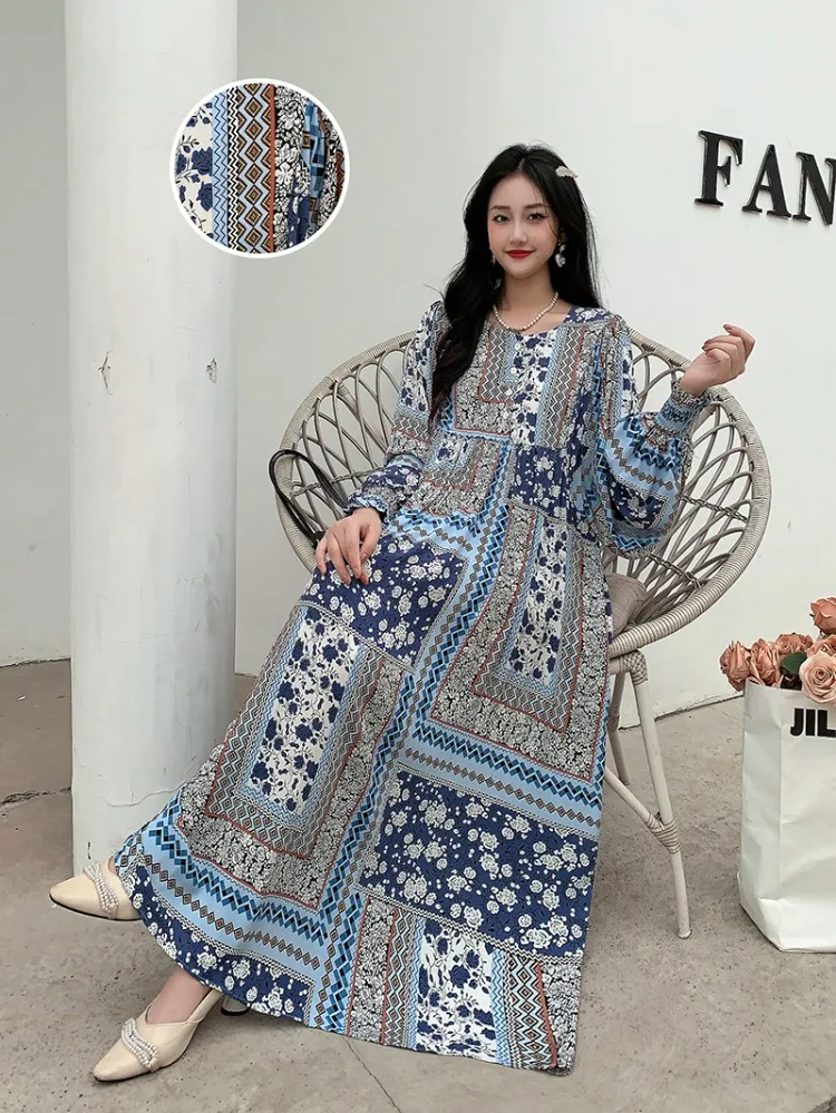 Kleid Frauen Kleidung plus Größe Frühling Sommer böhmischen Strand koreanischen Stil Blumen Vintage Vestidos Robe lose Kleider übergroß