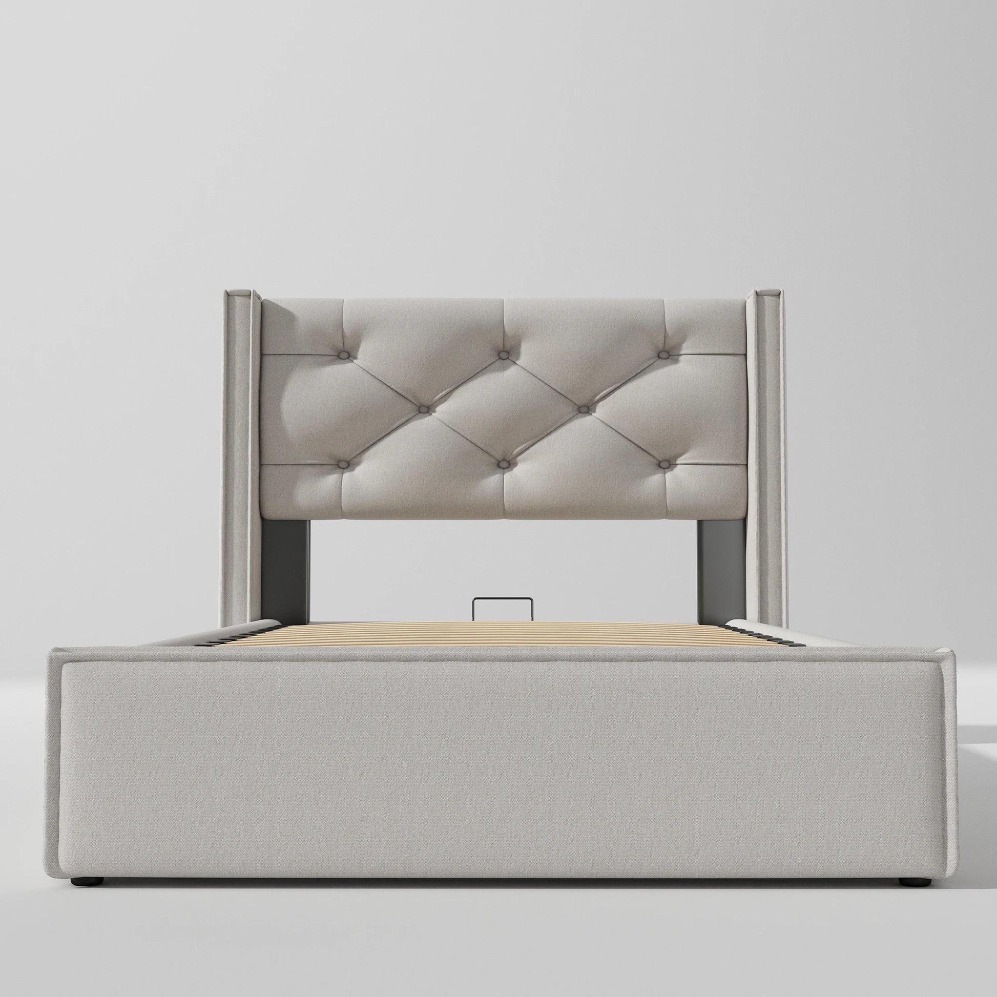 KOMHTOM Hydraulisch Polsterbett Einzelbett, - Metallrahmen-Lattenrost, modernes Bettgestell mit Stauraum, Baumwollbezug