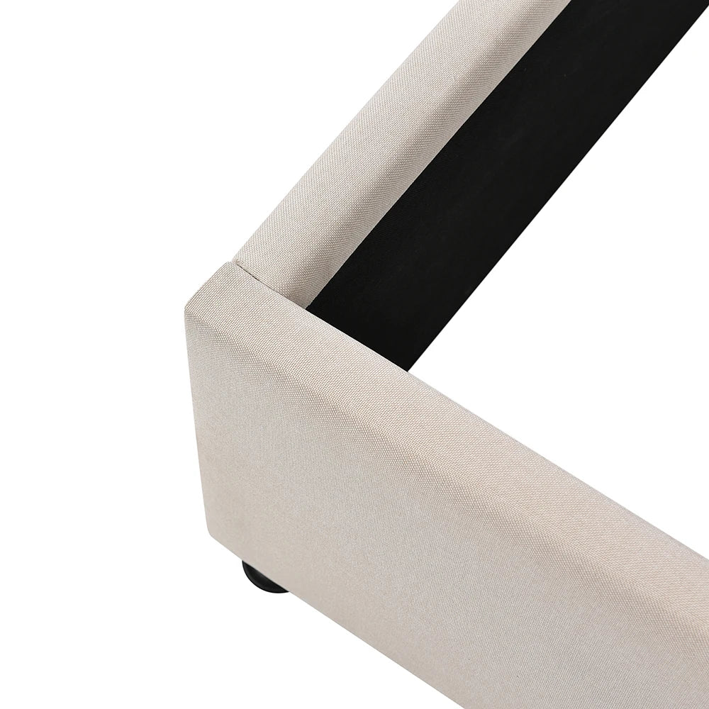 KOMHTOM Hydraulisches Doppelbett 180x200cm mit Polster, Lattenrost aus Holz, Metallrahmen, Leinen, Beige