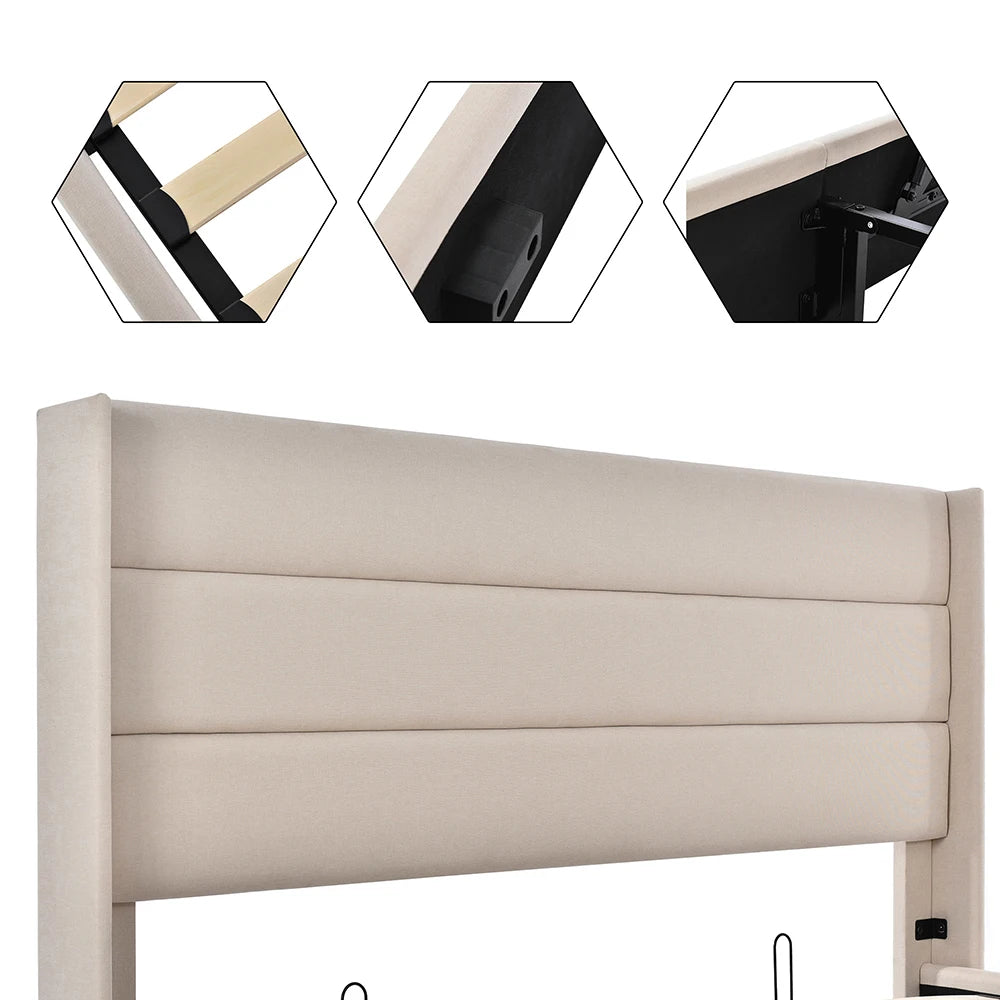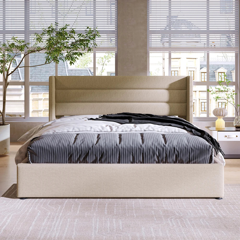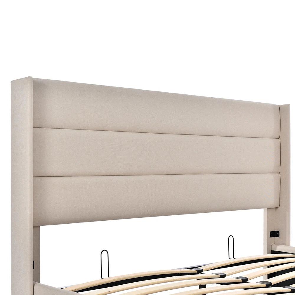 KOMHTOM Stauraumbett Polsterbett Hydraulisch 140x200cm Beige Leinen