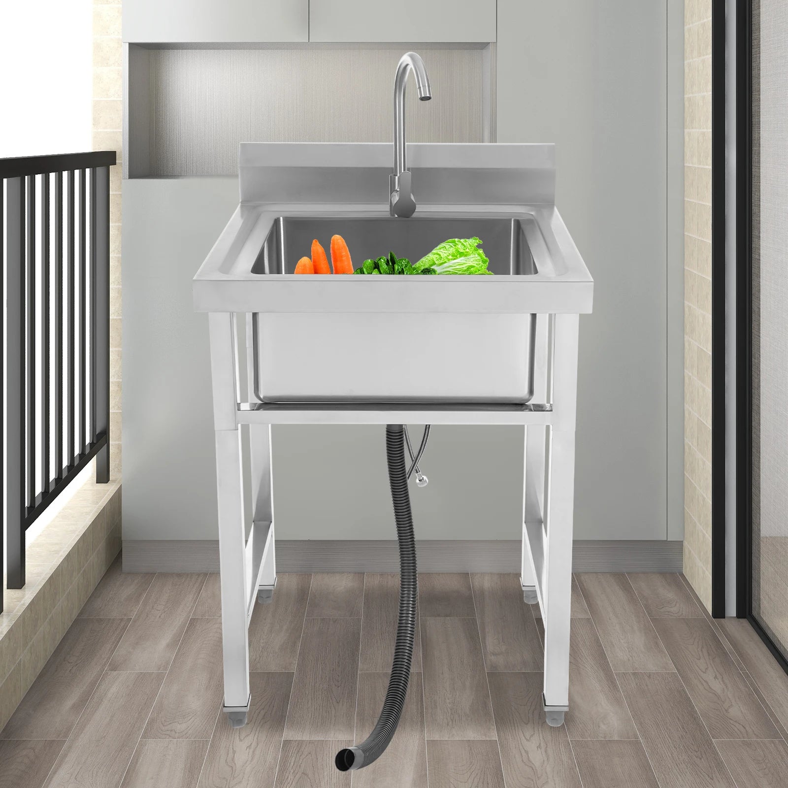 Kommerzielle Mehrzweckspüle aus Edelstahl – freistehende Küchenspüle mit Wasserhahn – NSF-Handwaschstation für Küchenspülen