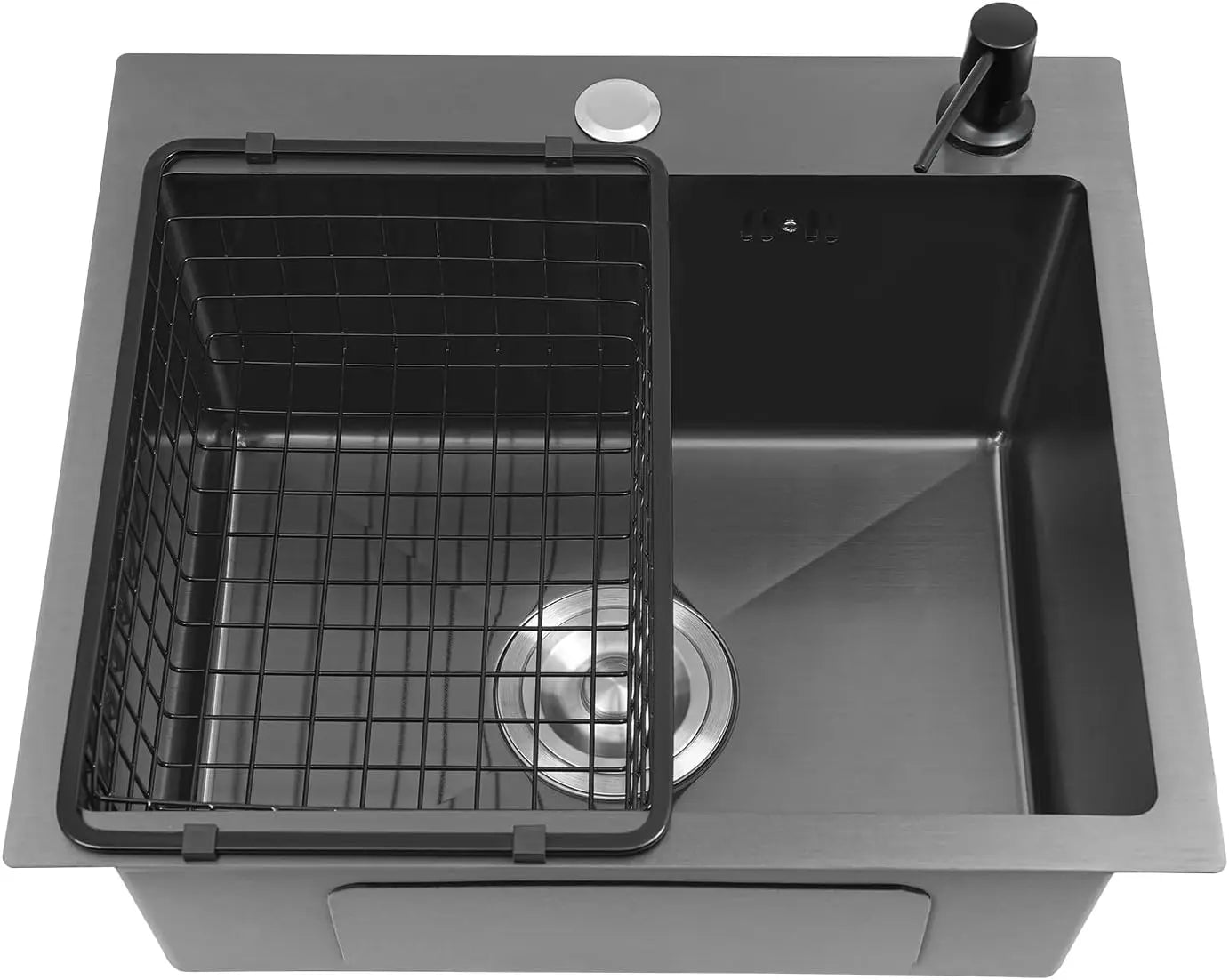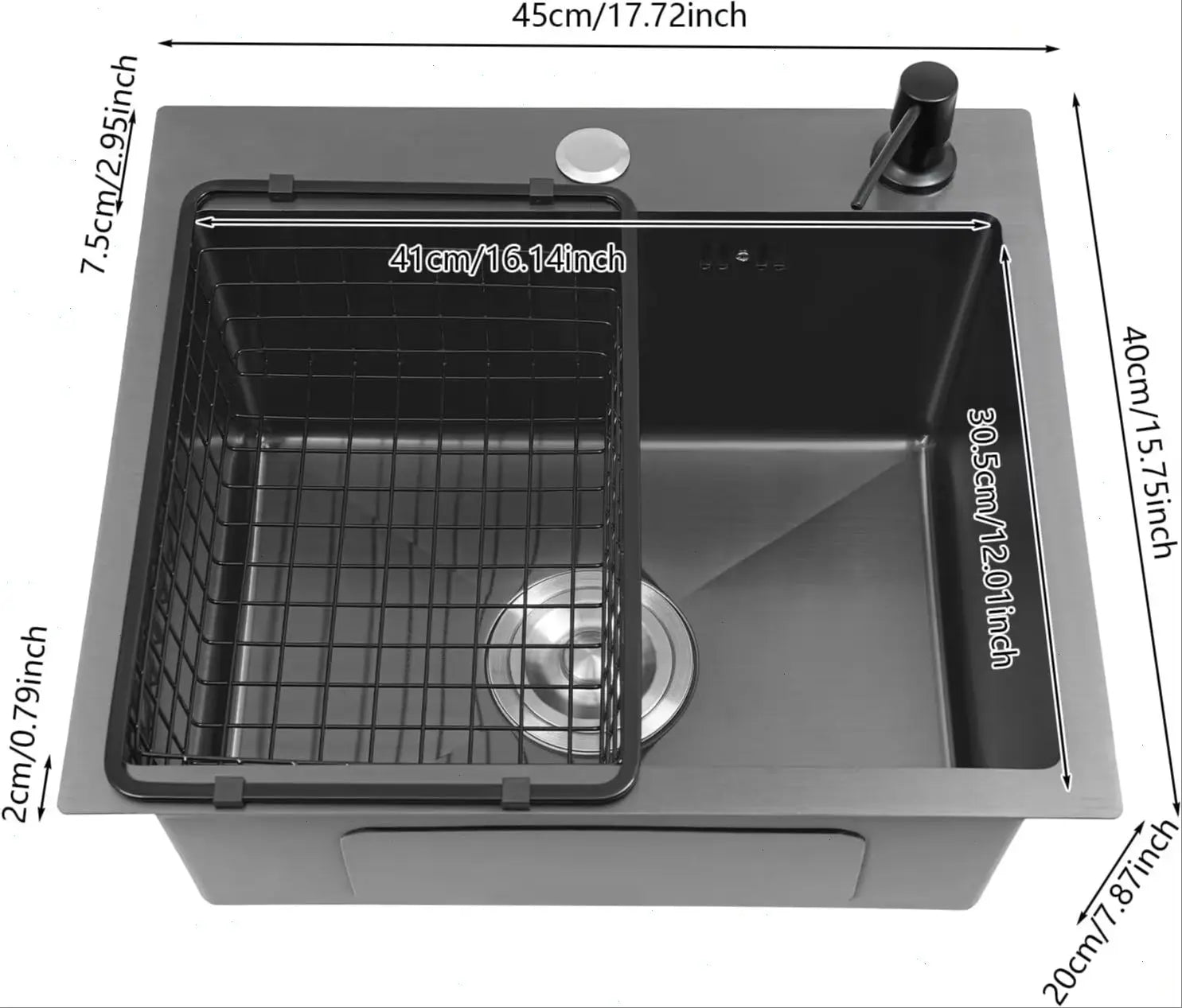 Küchenspüle 45x40cm Spülbecken Einbauspüle mit Abflusskorb und Seifenspender Edelstahl Spüle Küche Waschbecken, 1 Becken, Schwar