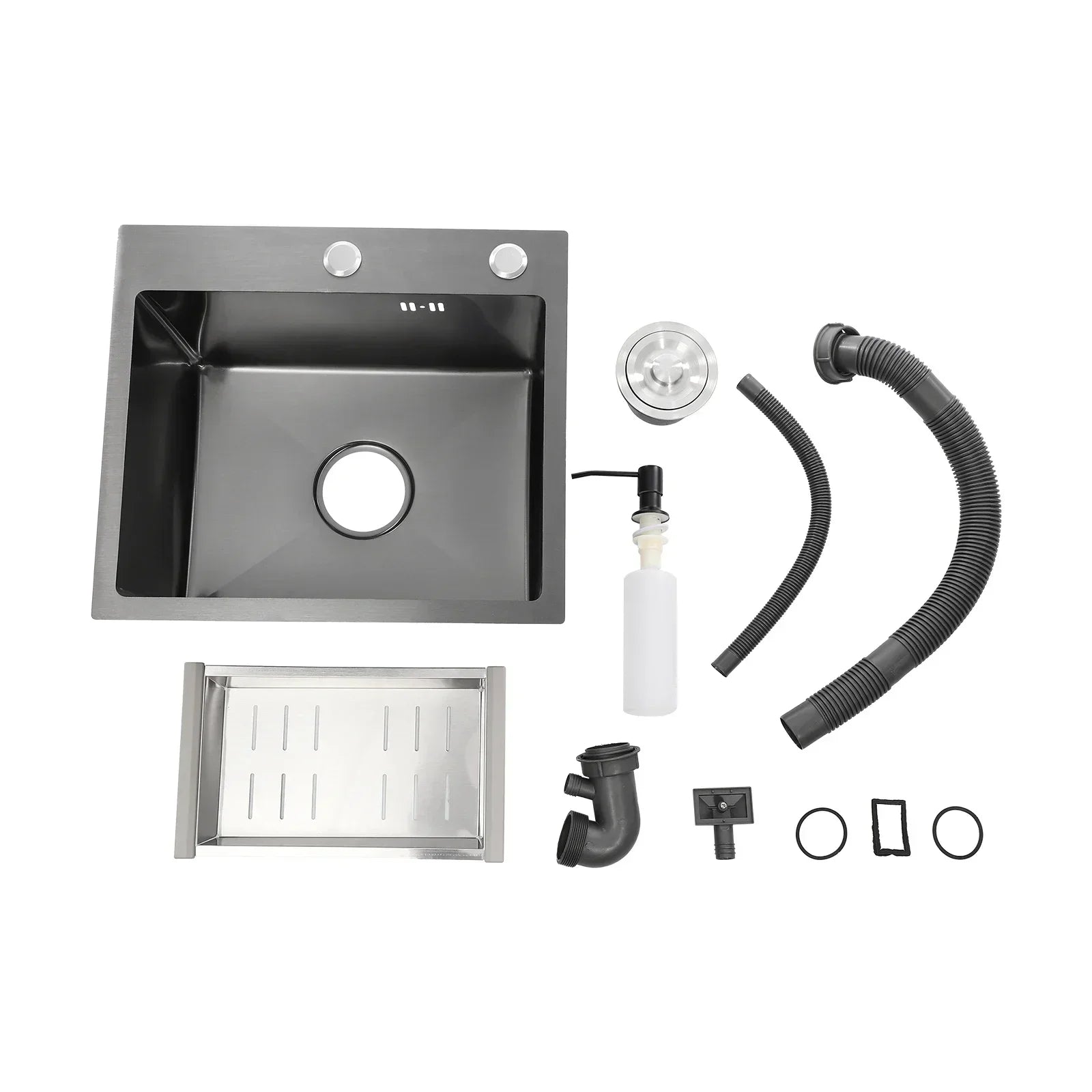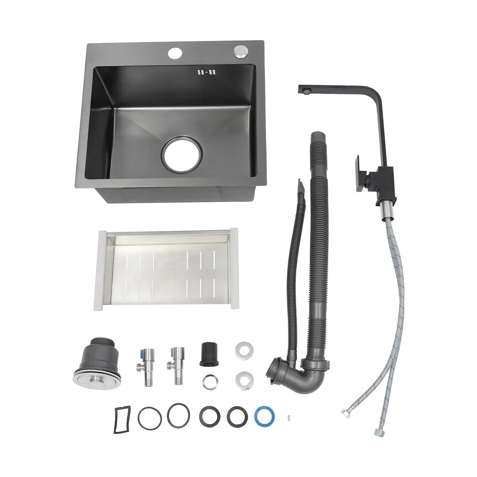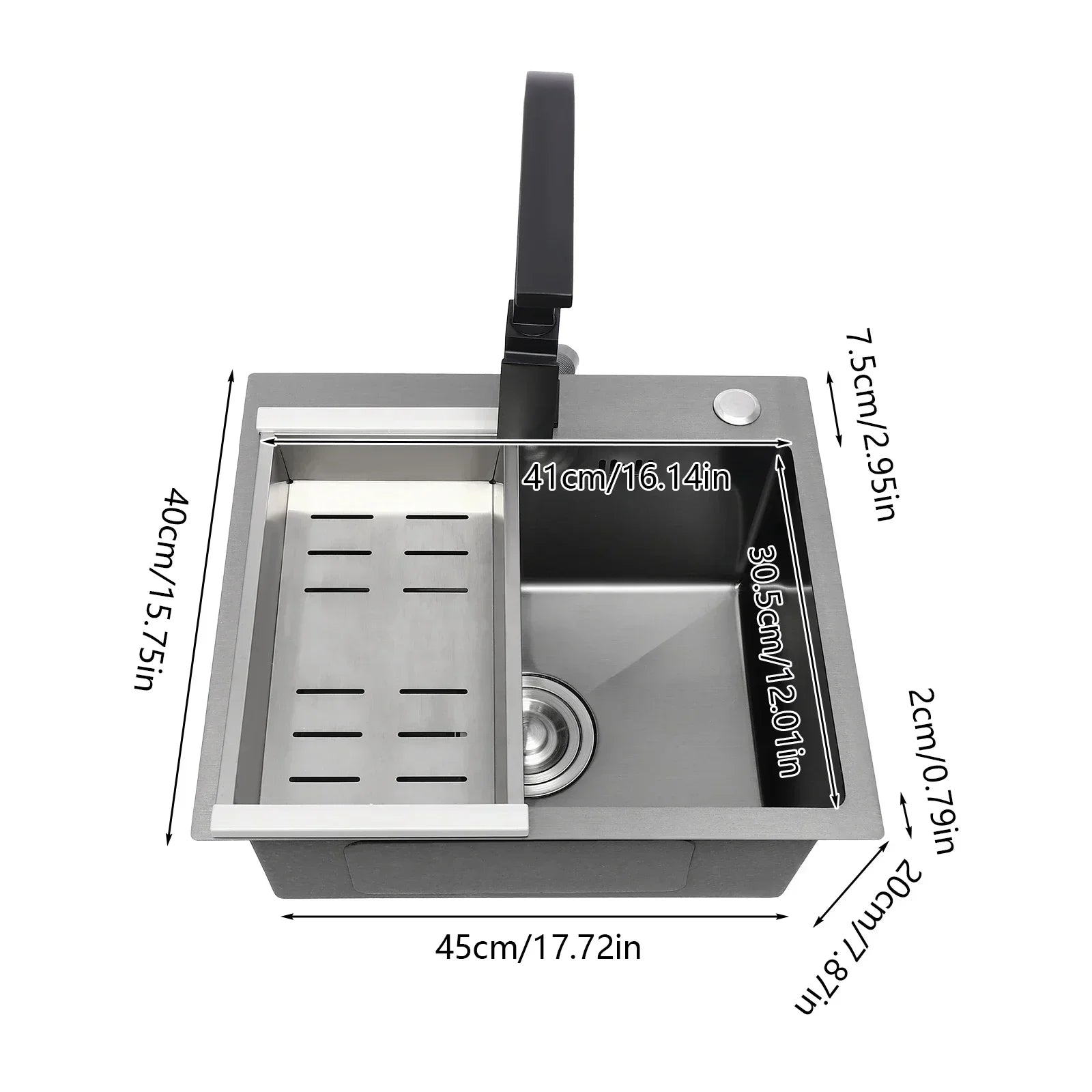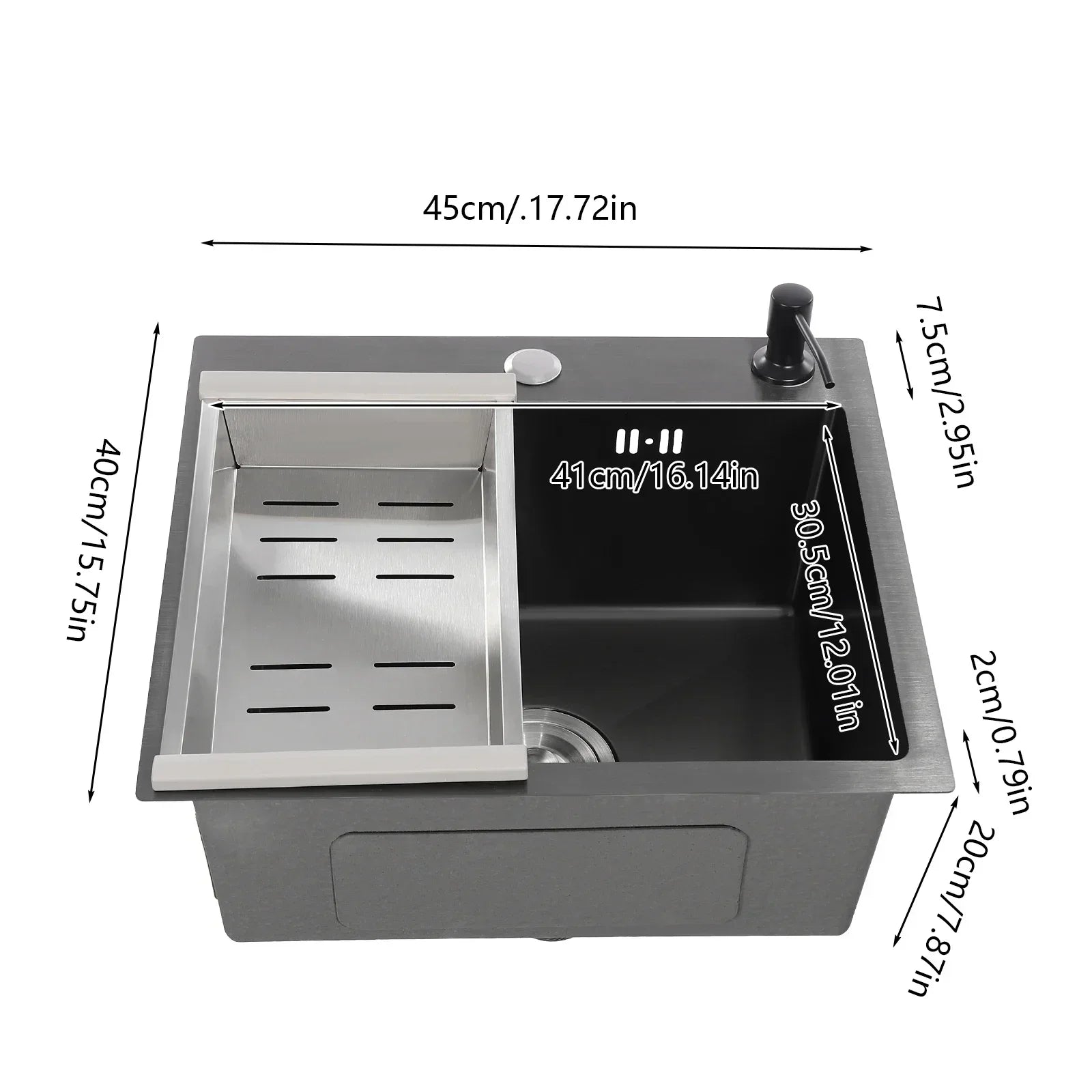 Küchenspüle aus Edelstahl 201 mit Wasserhahn, Seifenspender für Häuser, Restaurants, Wäschezimmer, Keller, 45 x 40 x 20 cm
