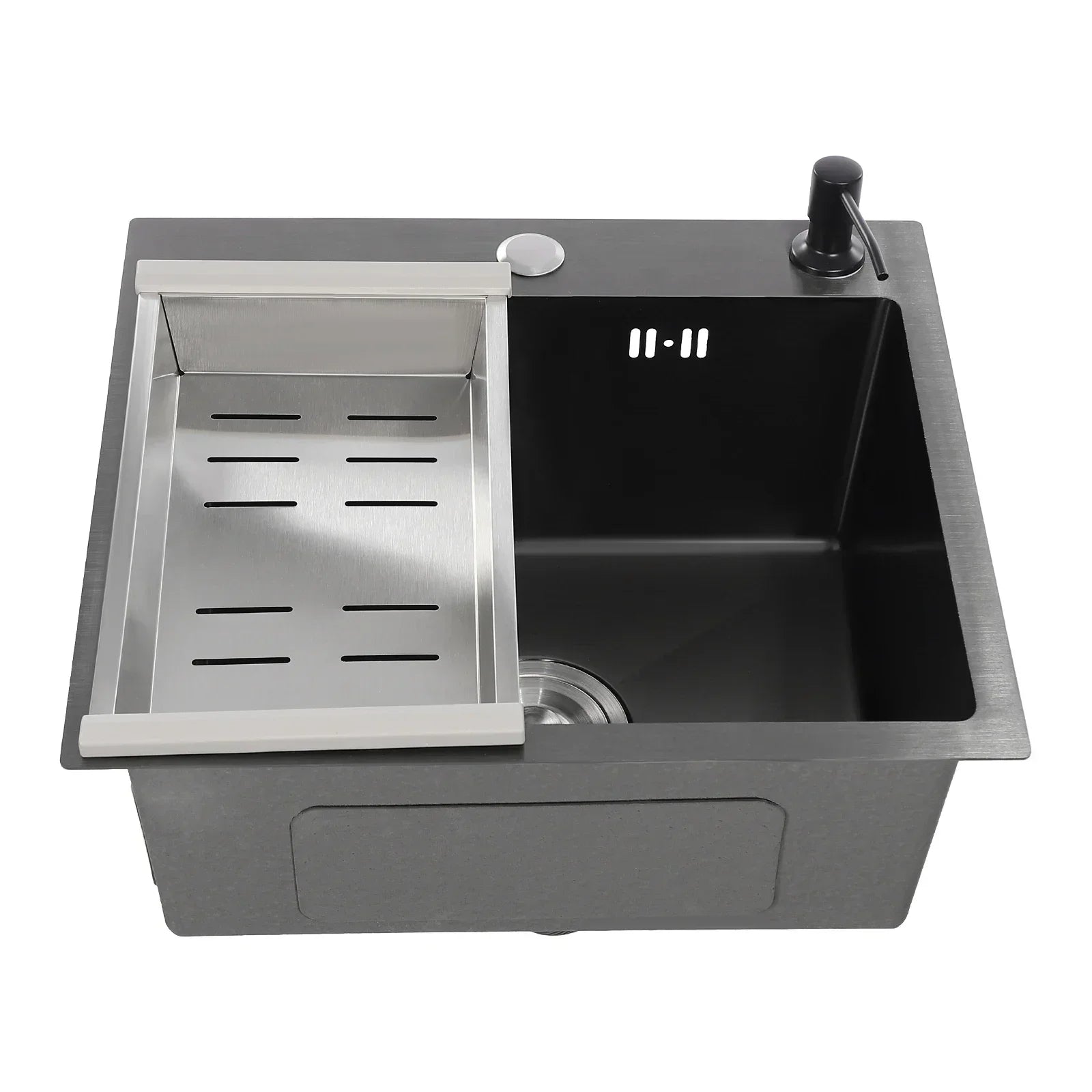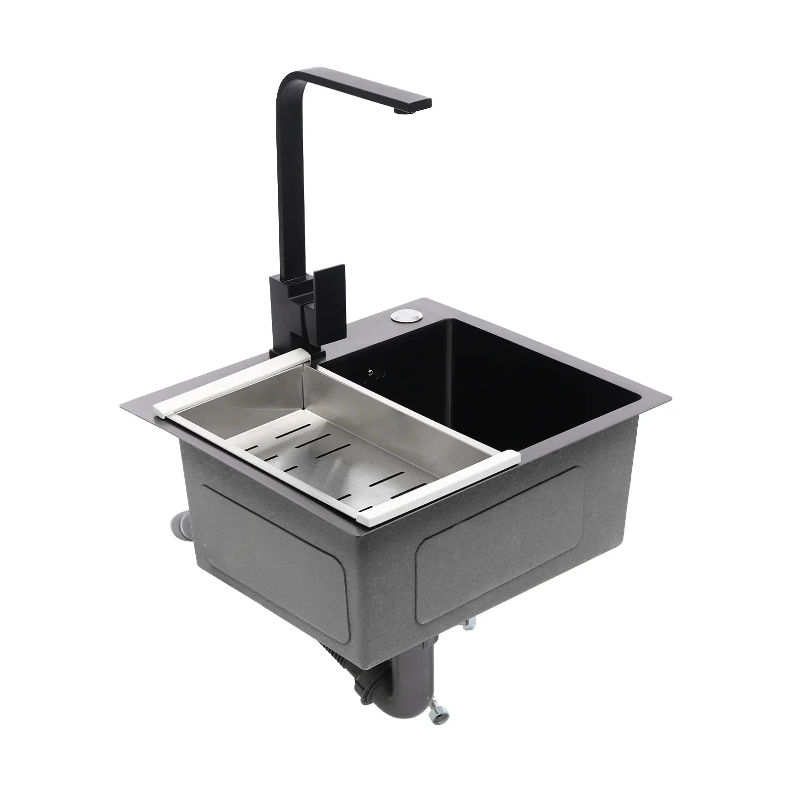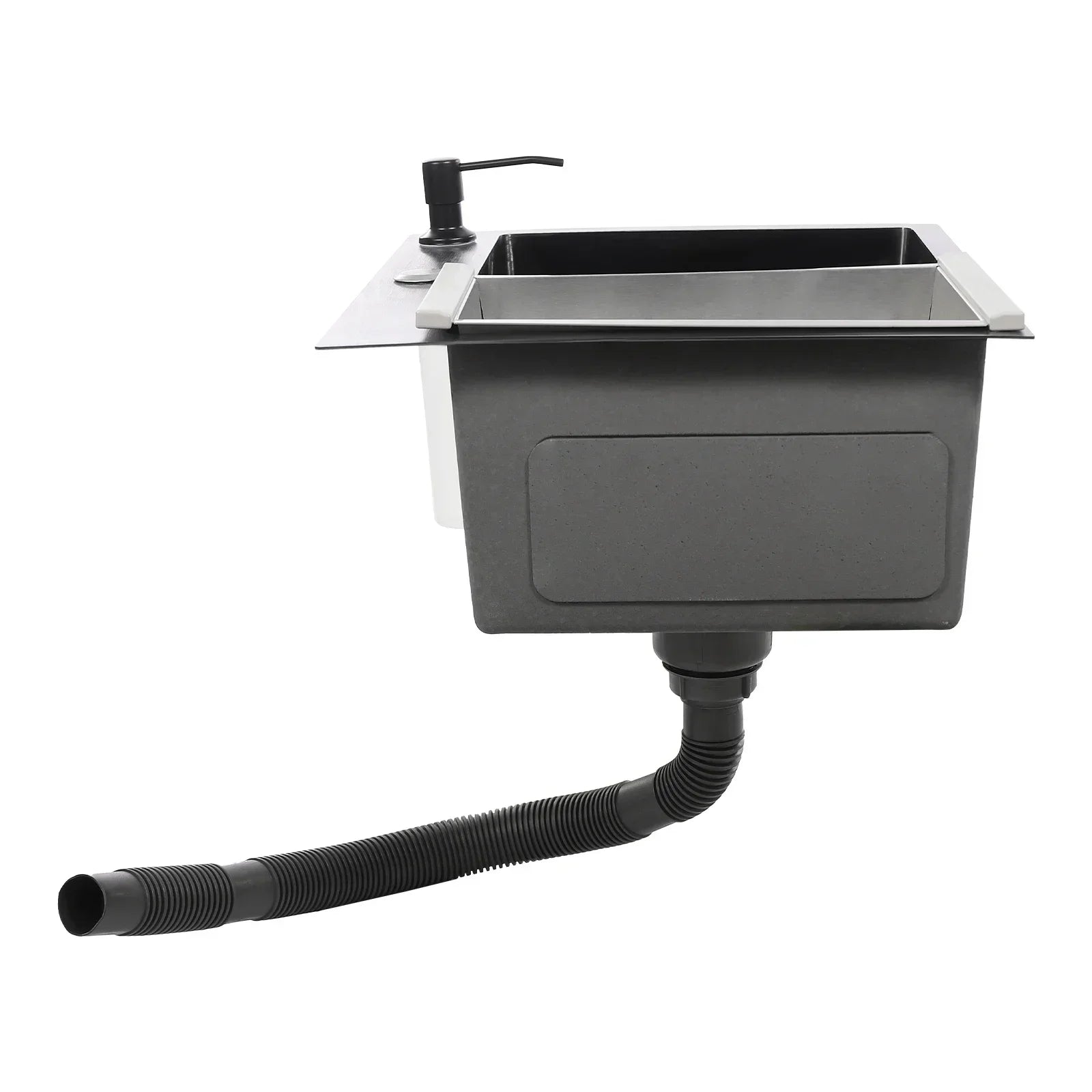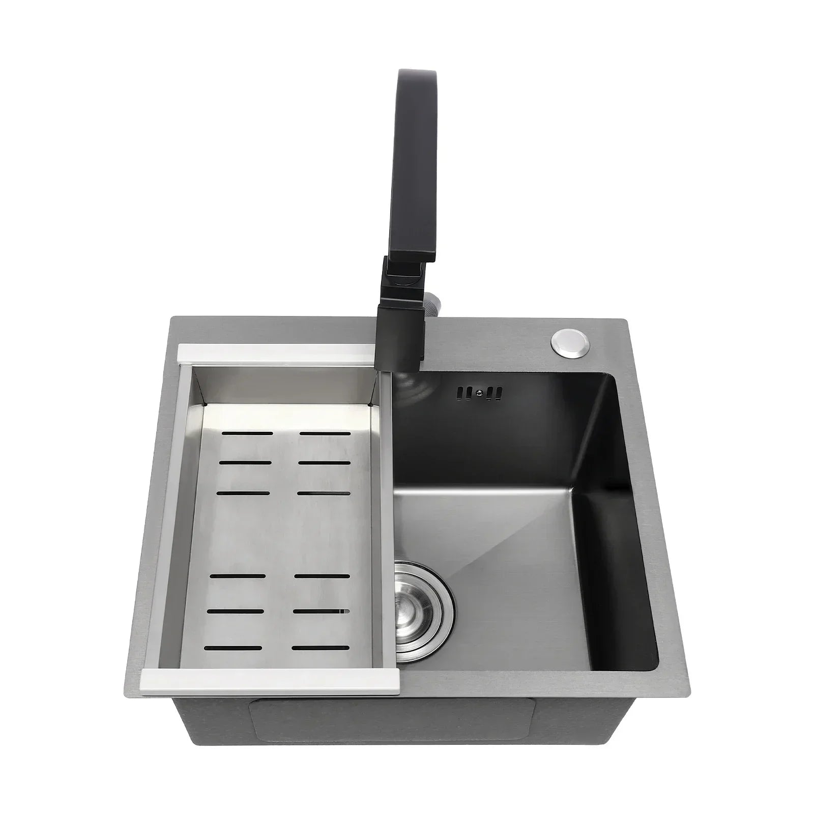 Küchenspüle aus Edelstahl 201 mit Wasserhahn, Seifenspender für Häuser, Restaurants, Wäschezimmer, Keller, 45 x 40 x 20 cm