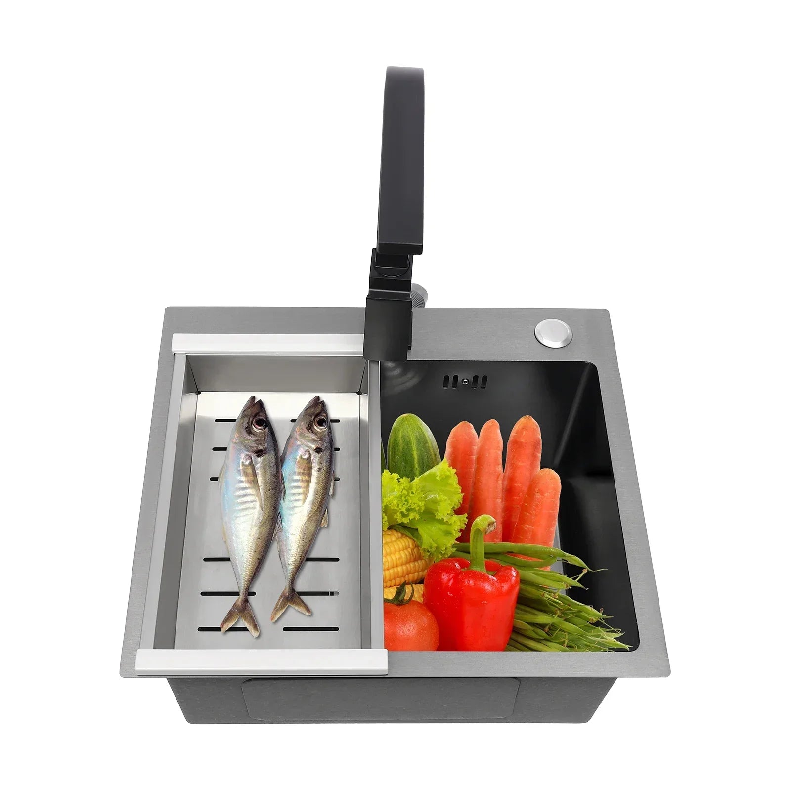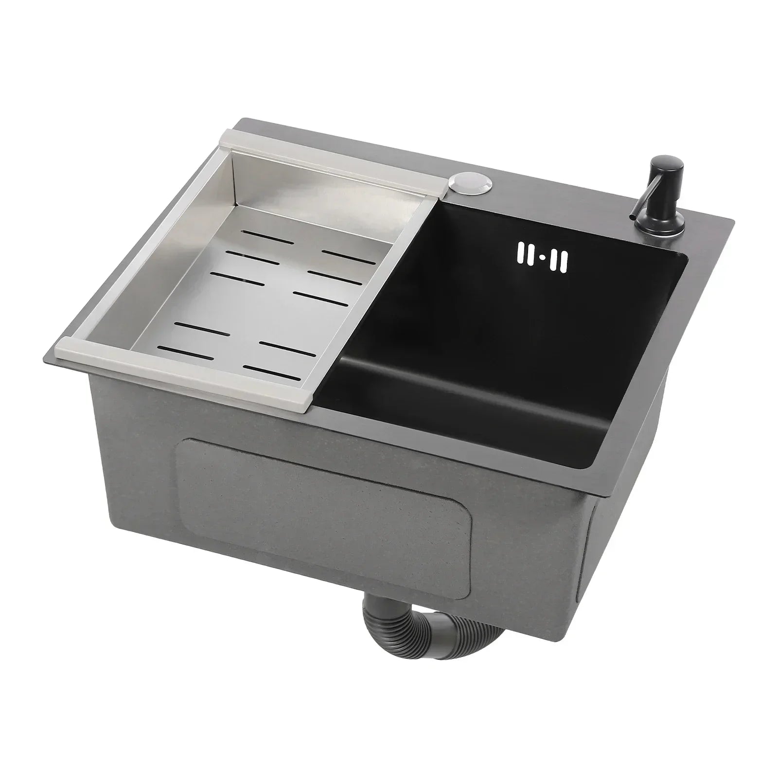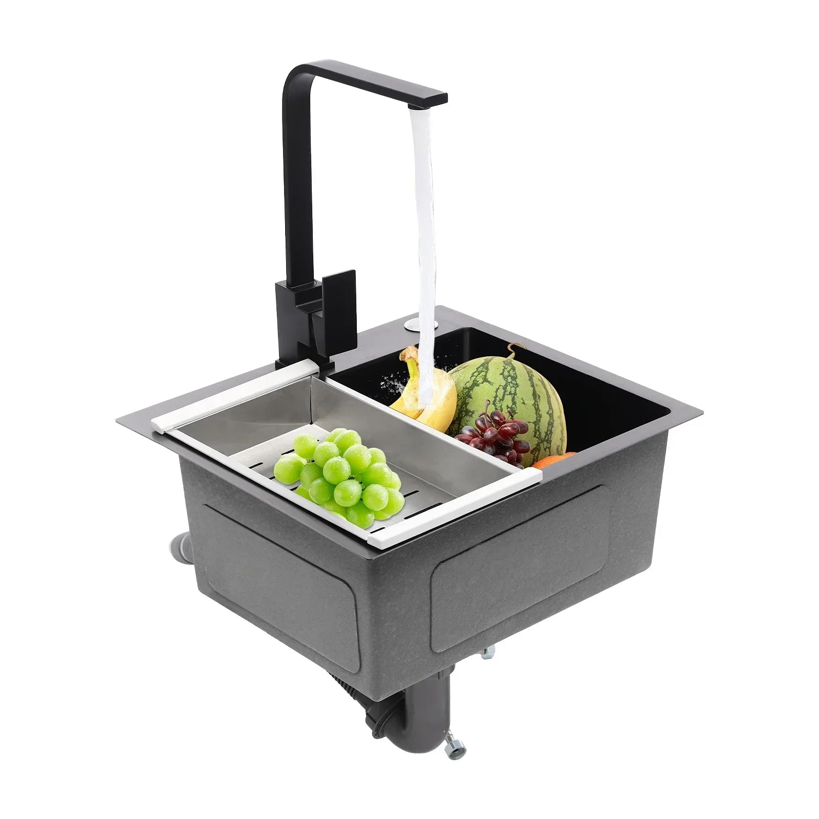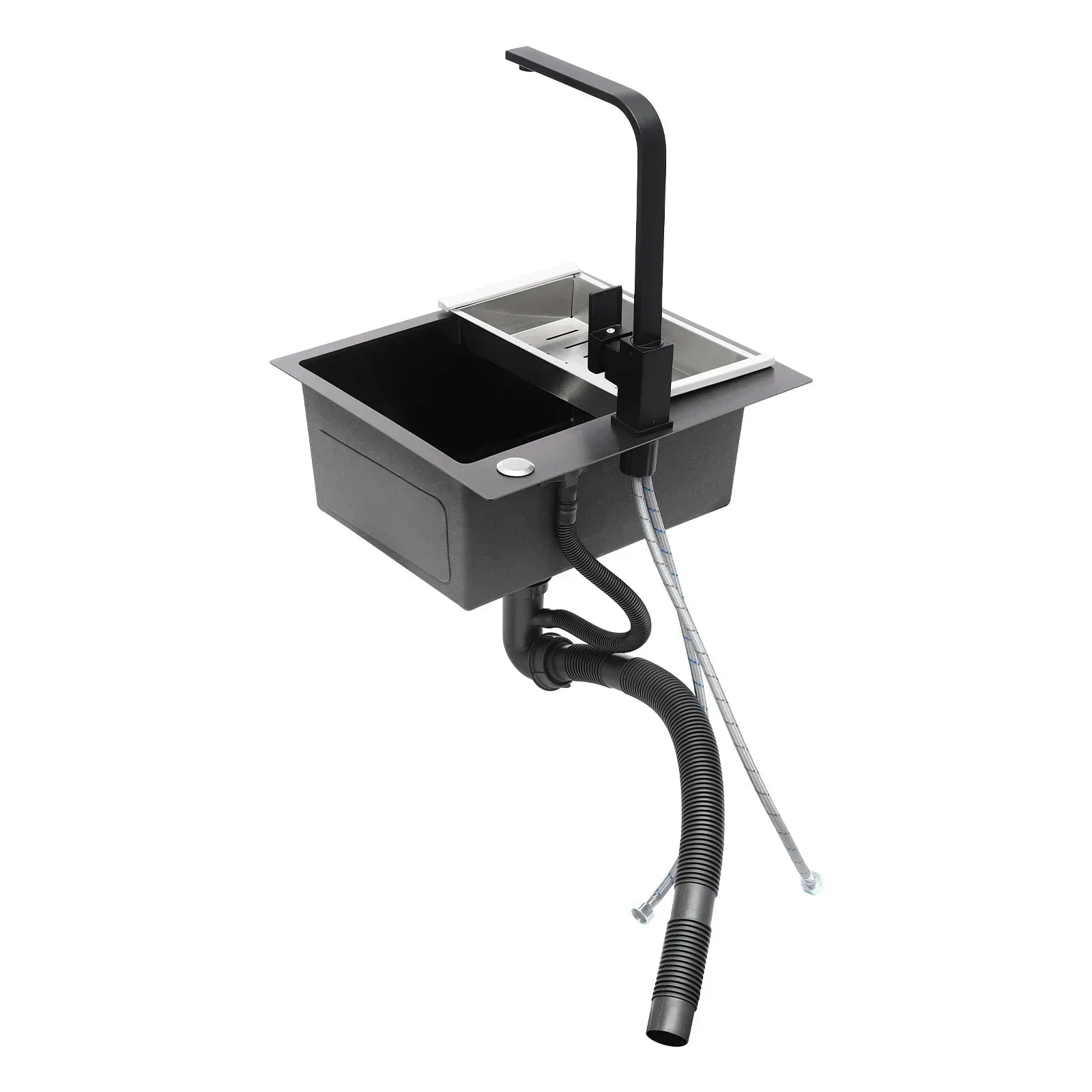Küchenspüle aus Edelstahl 201 mit Wasserhahn, Seifenspender für Häuser, Restaurants, Wäschezimmer, Keller, 45 x 40 x 20 cm