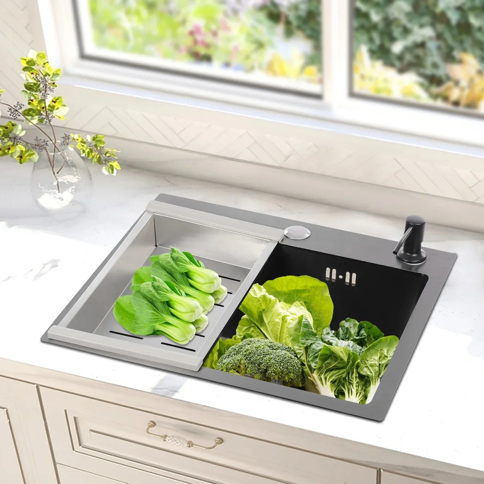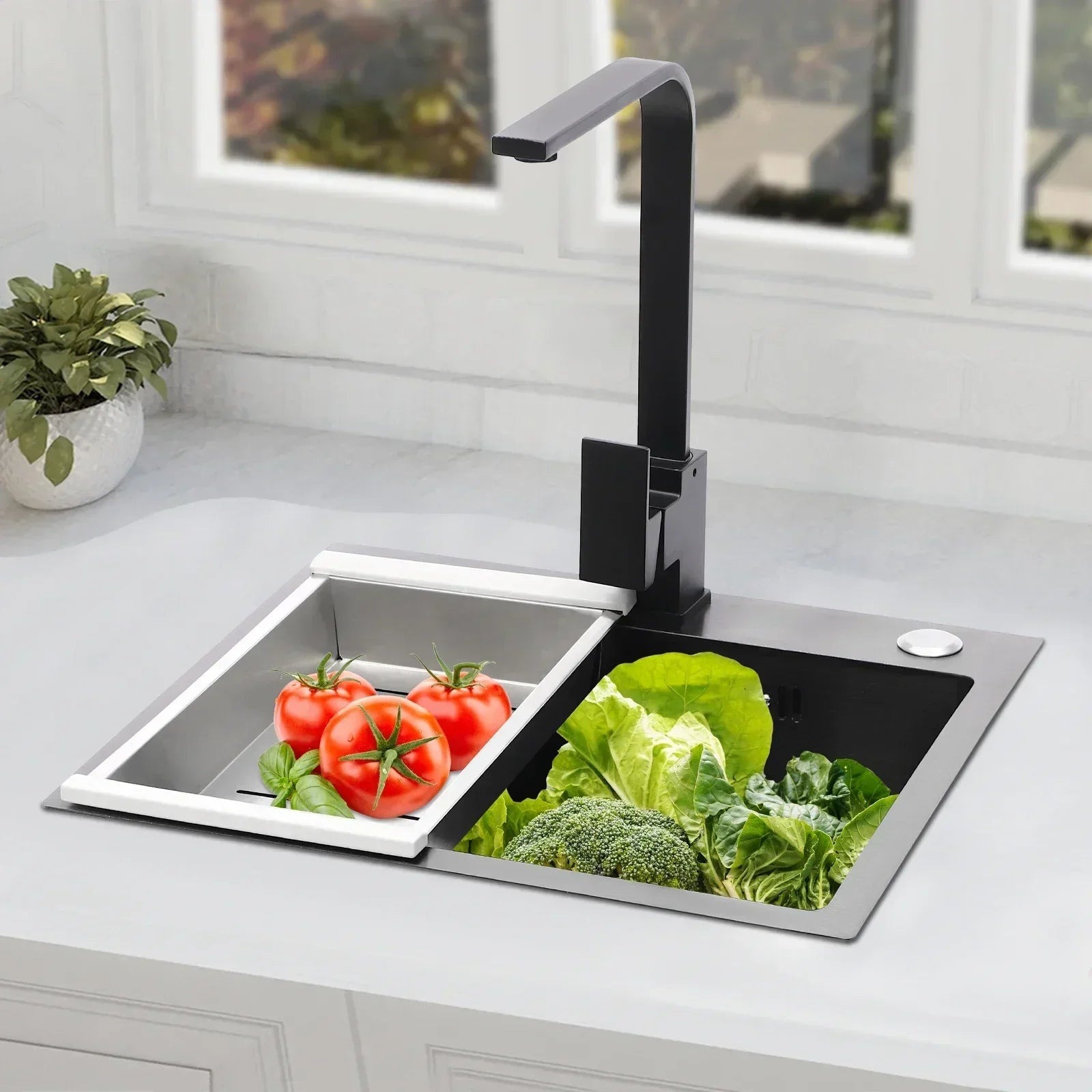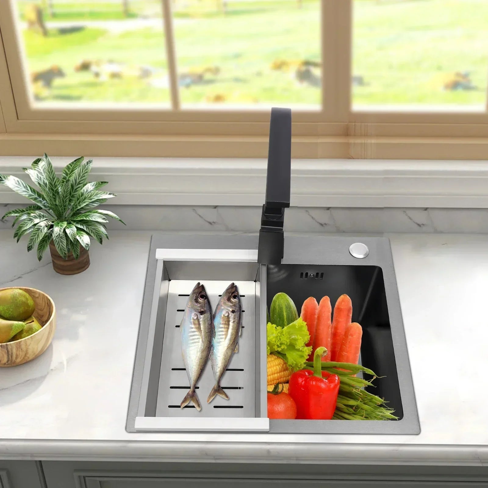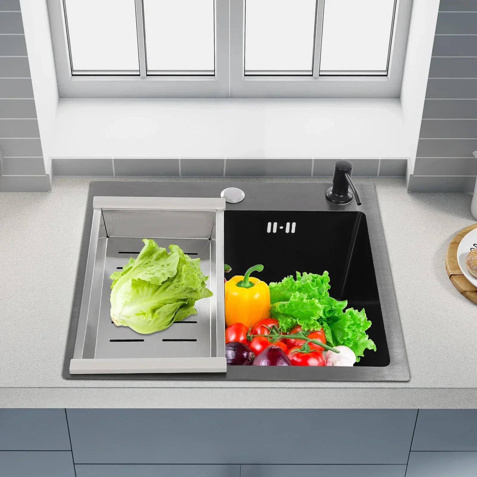 Küchenspüle aus Edelstahl 201 mit Wasserhahn, Seifenspender für Häuser, Restaurants, Wäschezimmer, Keller, 45 x 40 x 20 cm