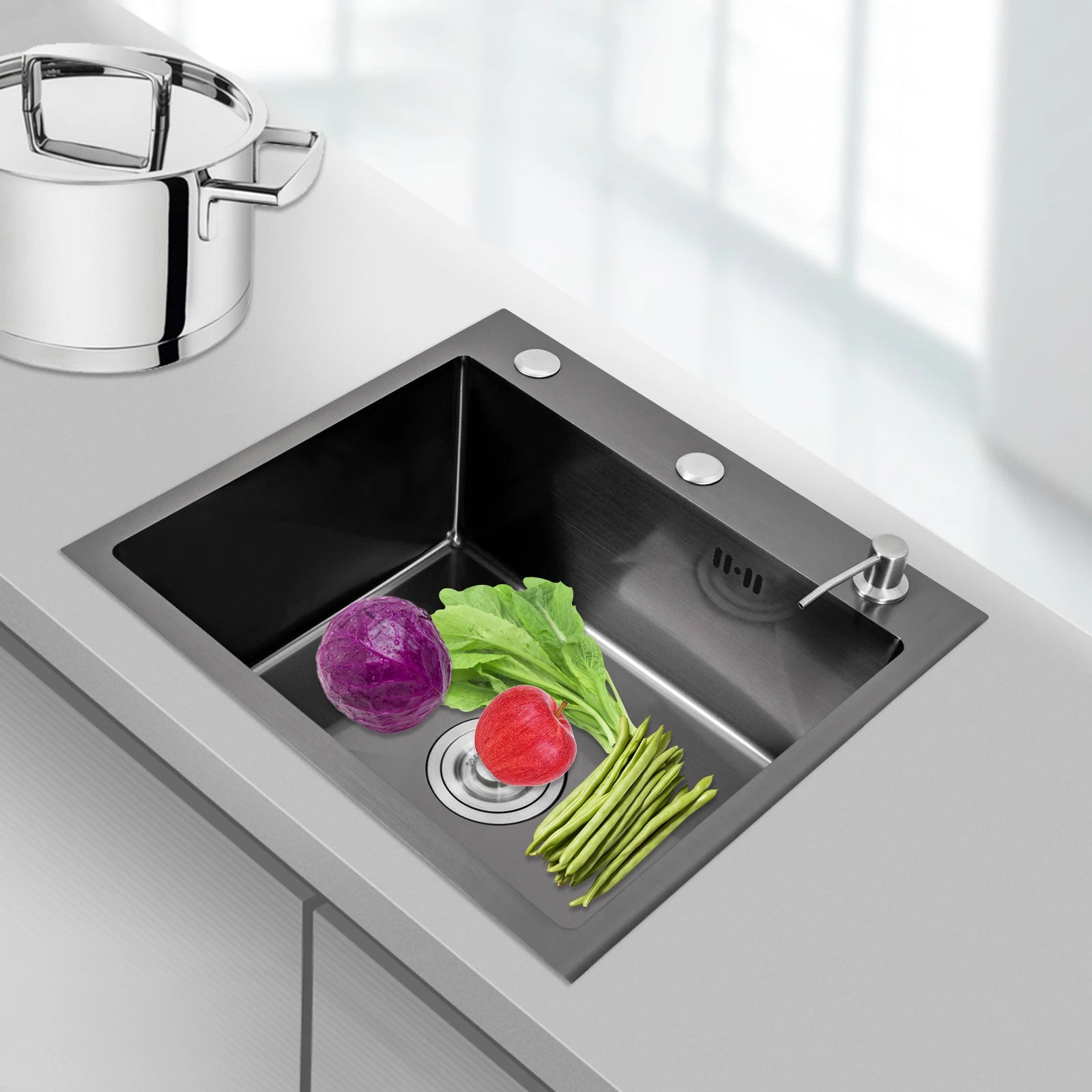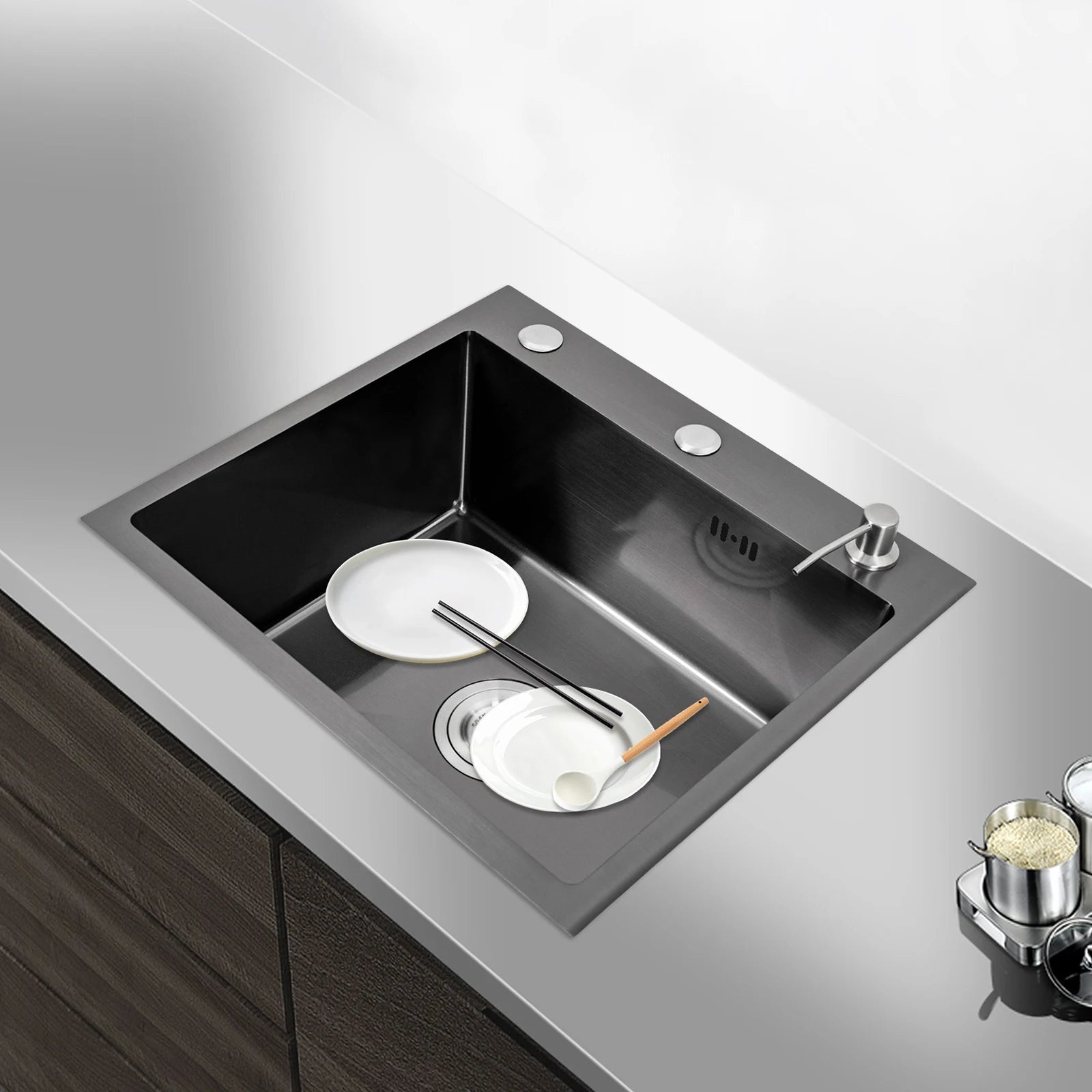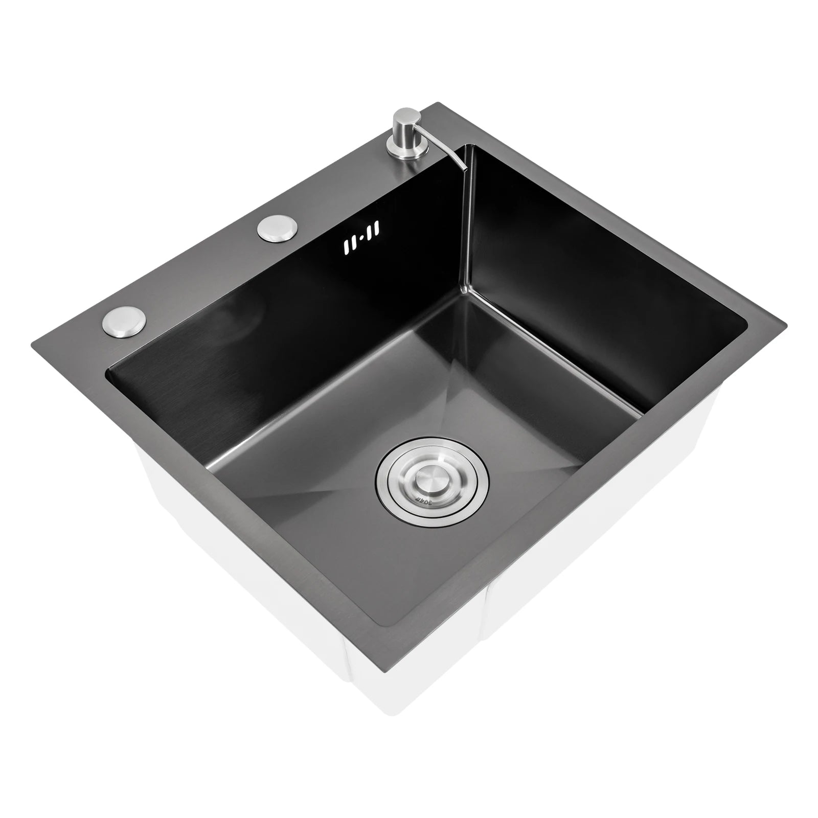 Küchenspüle aus Edelstahl mit integrierter Einzelschüssel, mit Rohr und Seifenspender