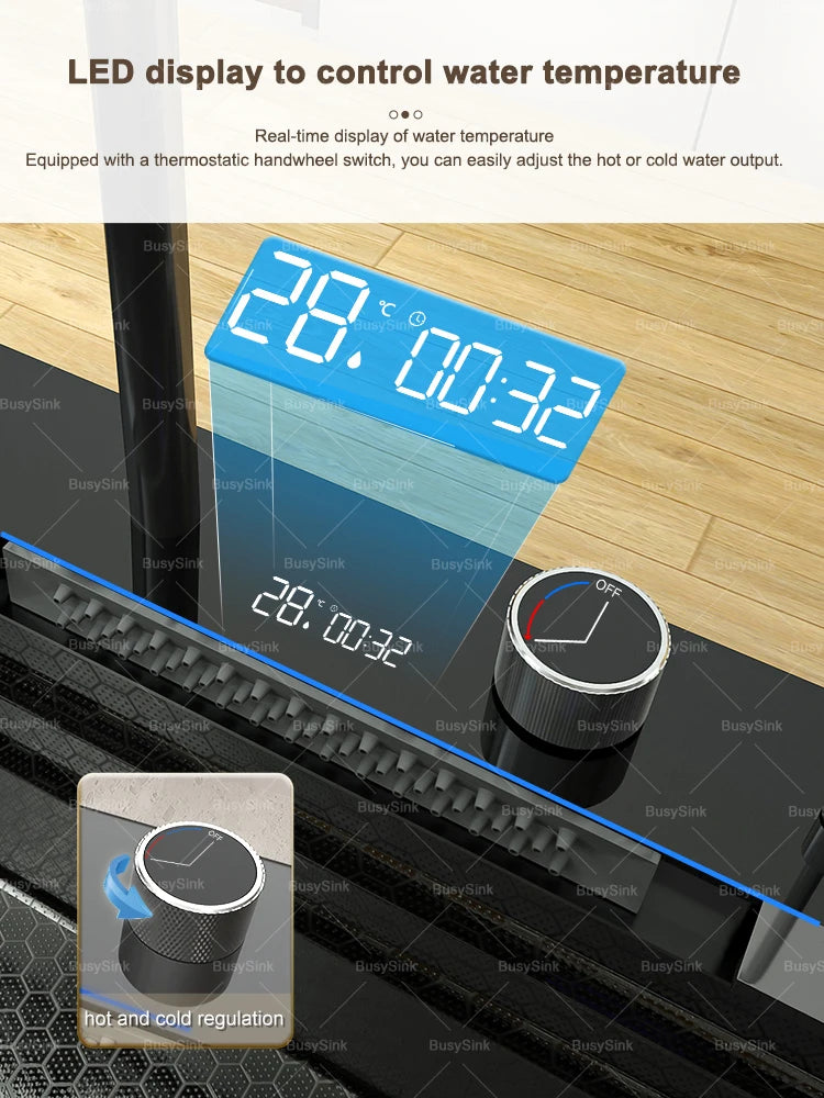 Küchenspüle aus Edelstahl mit Wasserfall, extra große Einzelschüssel, Digitalanzeige, multifunktionale Geschirrspülbecken