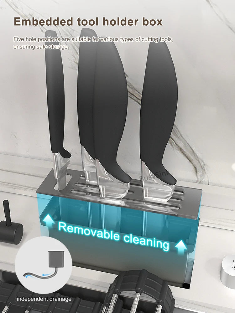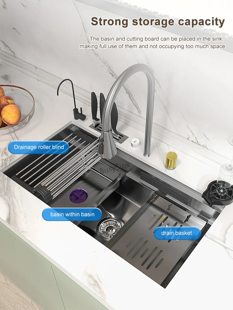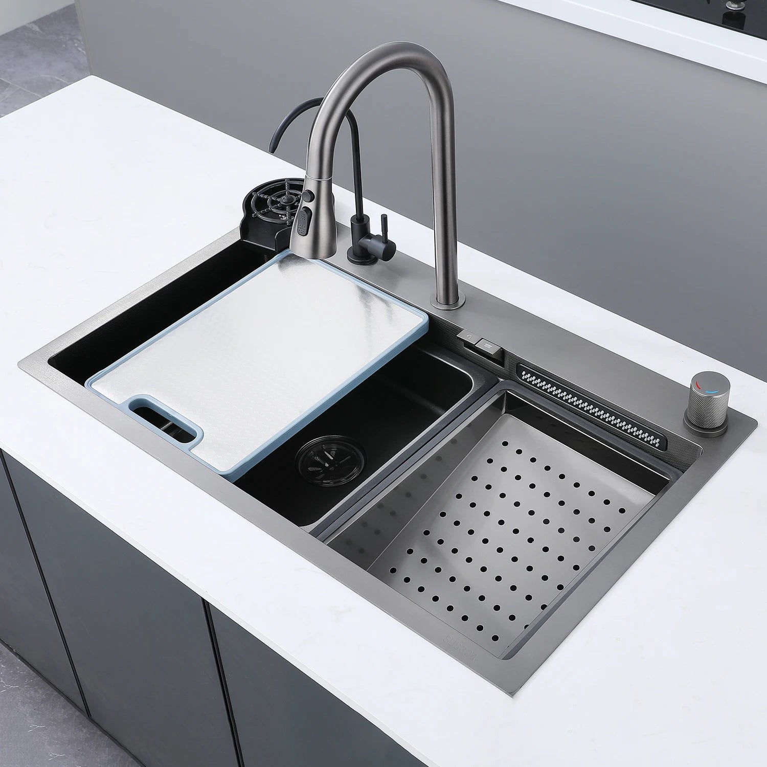 Küchenspüle aus Edelstahl mit Wasserfall, großer Einzelschlitz, multifunktionale Geschirrspülbecken, Unterbaubecken