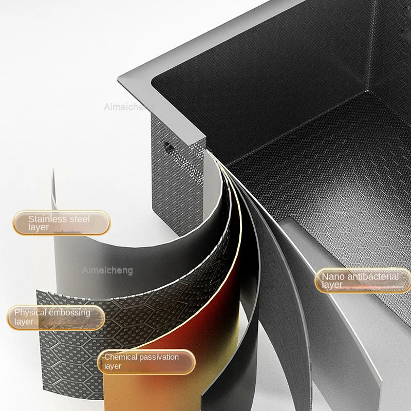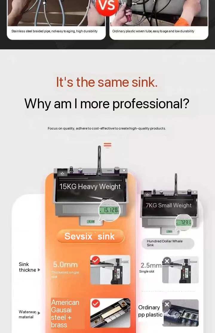 Küchenspüle aus Edelstahl mit Wasserhahn, Digitalanzeige, große Einzelschüssel, Wasserfall, Regen, 5-Funktionen-System, Spülbecken, Spüle