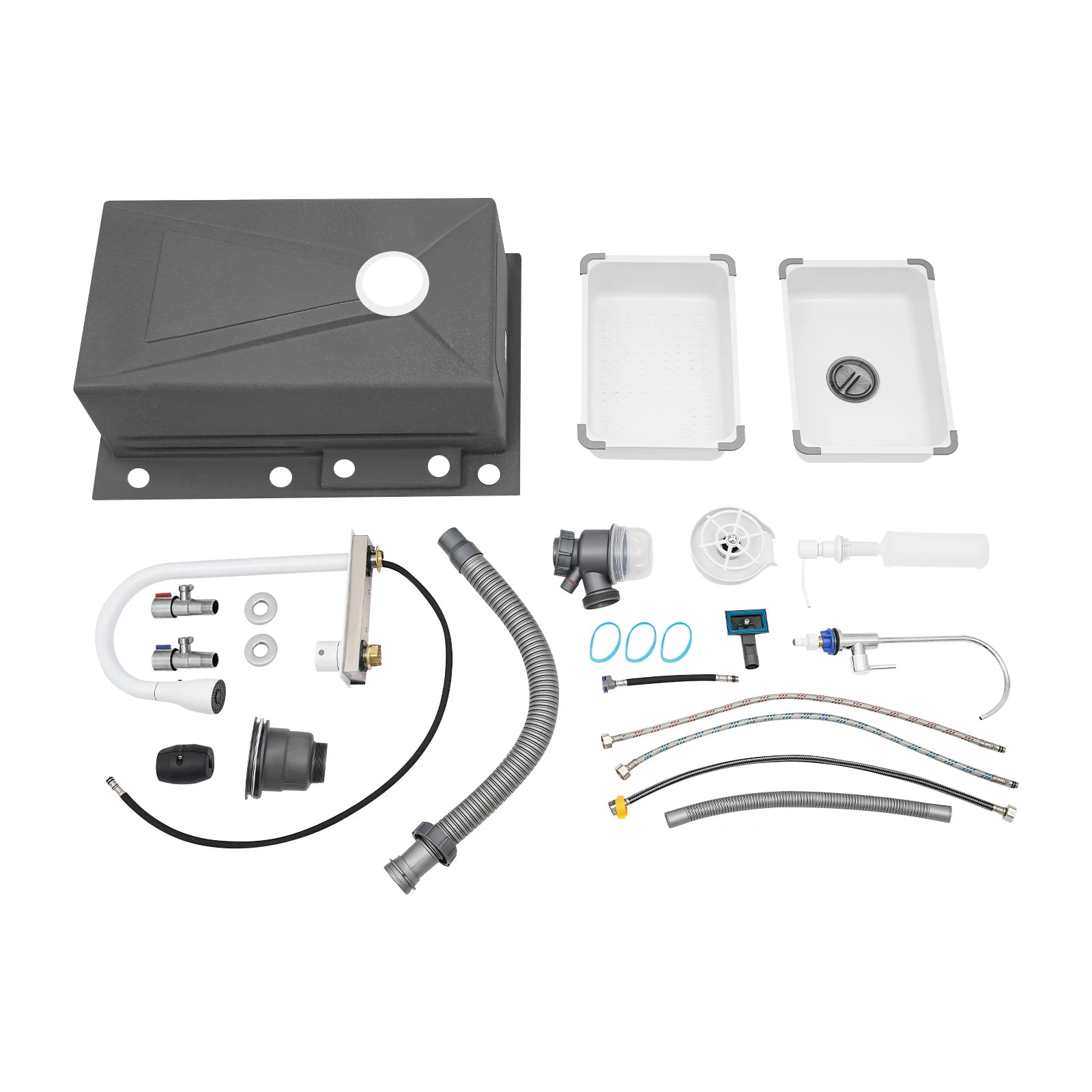 Küchenspüle, rostbeständiges Spülbecken mit ausziehbarem Wasserhahn, Schallschutzwirkung für Zuhause/Küche/Kanteine/Hotel/Bar