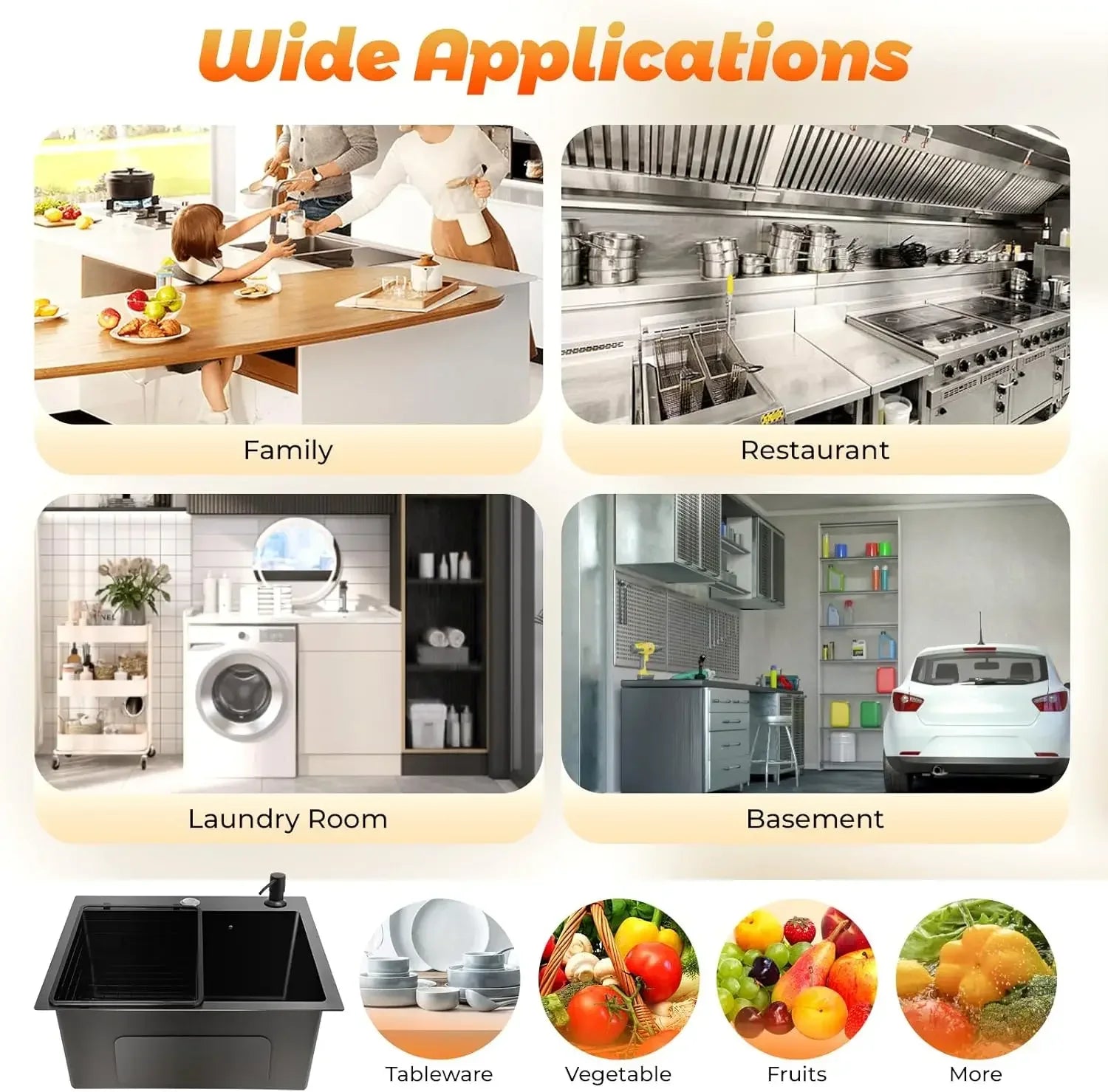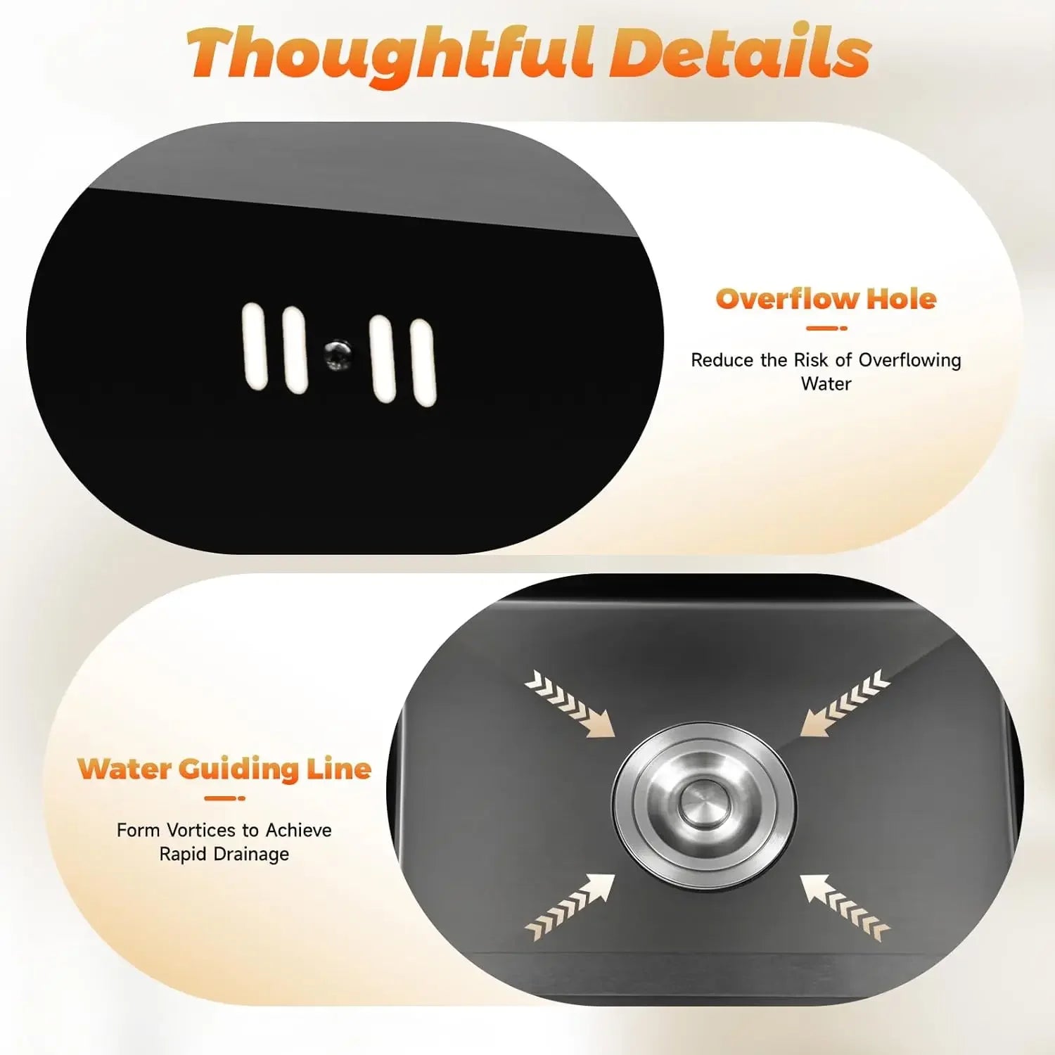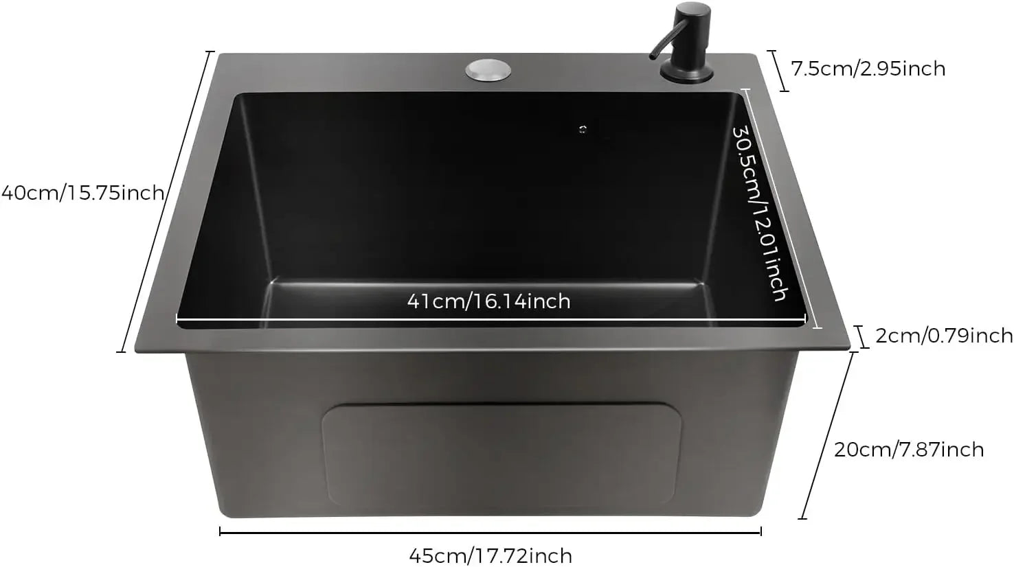 Küchenspüle, Schwarz, 45 x 40 cm, Küchenspüle, 1 Waschbecken, Edelstahl, quadratisch, moderne integrierte Spüle (ohne Wasserhahn)