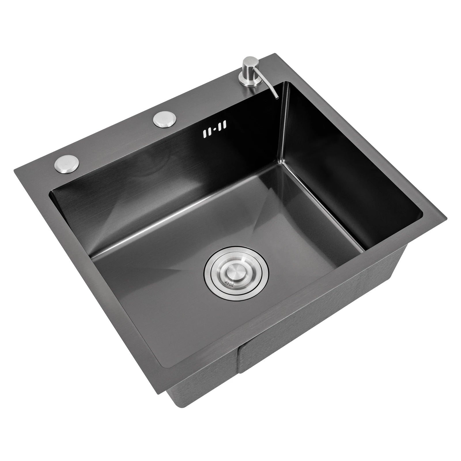Küchenspüle-Set, mit Abtropffläche, integriertes Einzelschüssel-Spülbecken mit Seifenspender, Edelstahlspüle, Küchenspüle 50 x 45 cm