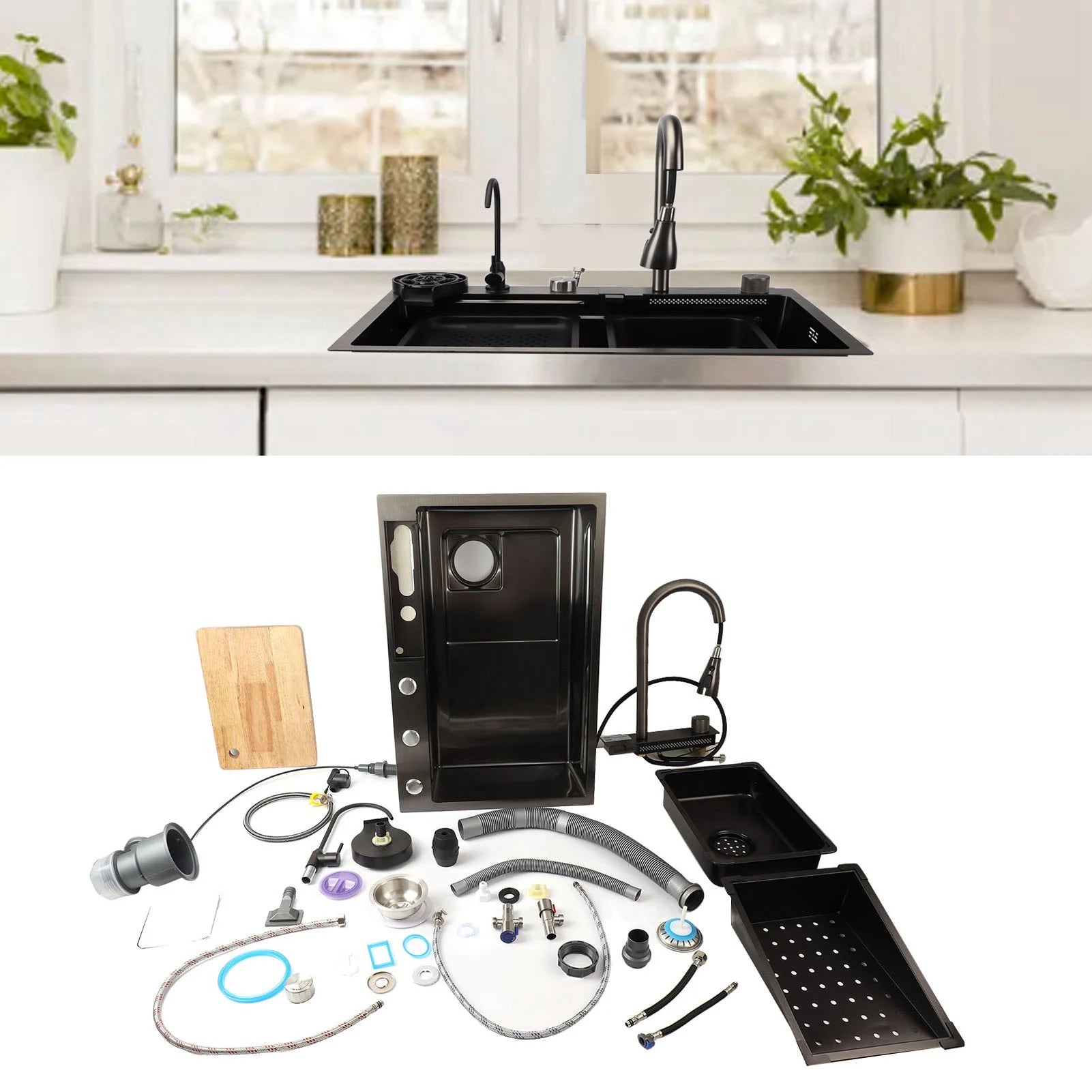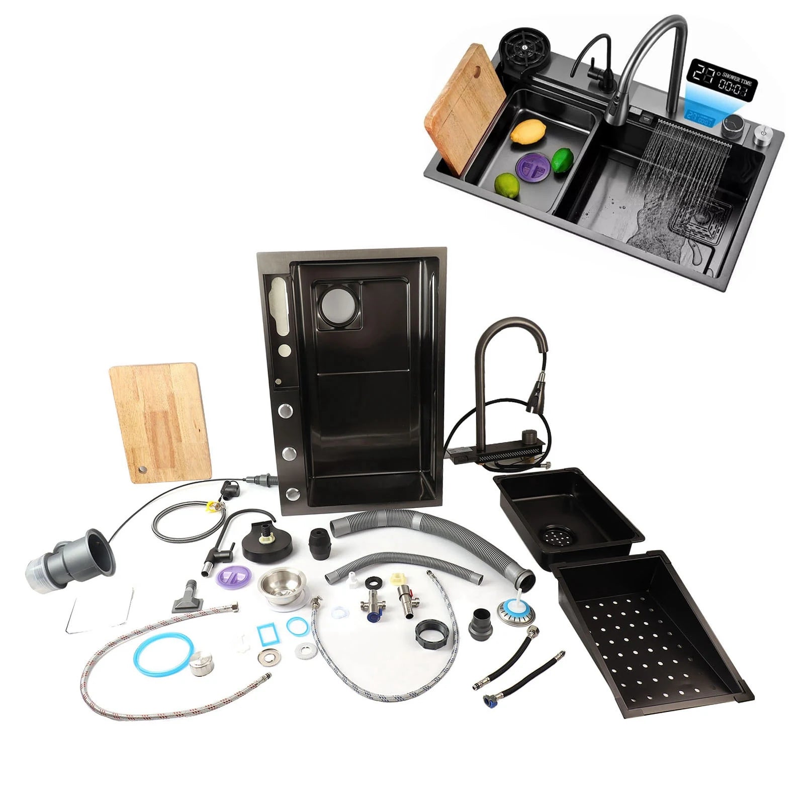 Küchenspüle unter der Theke, 68 x 45 cm, verdickter Edelstahl, Digitalanzeige, Küchenspüle, Küchenspüle, Unterbauwaschbecken