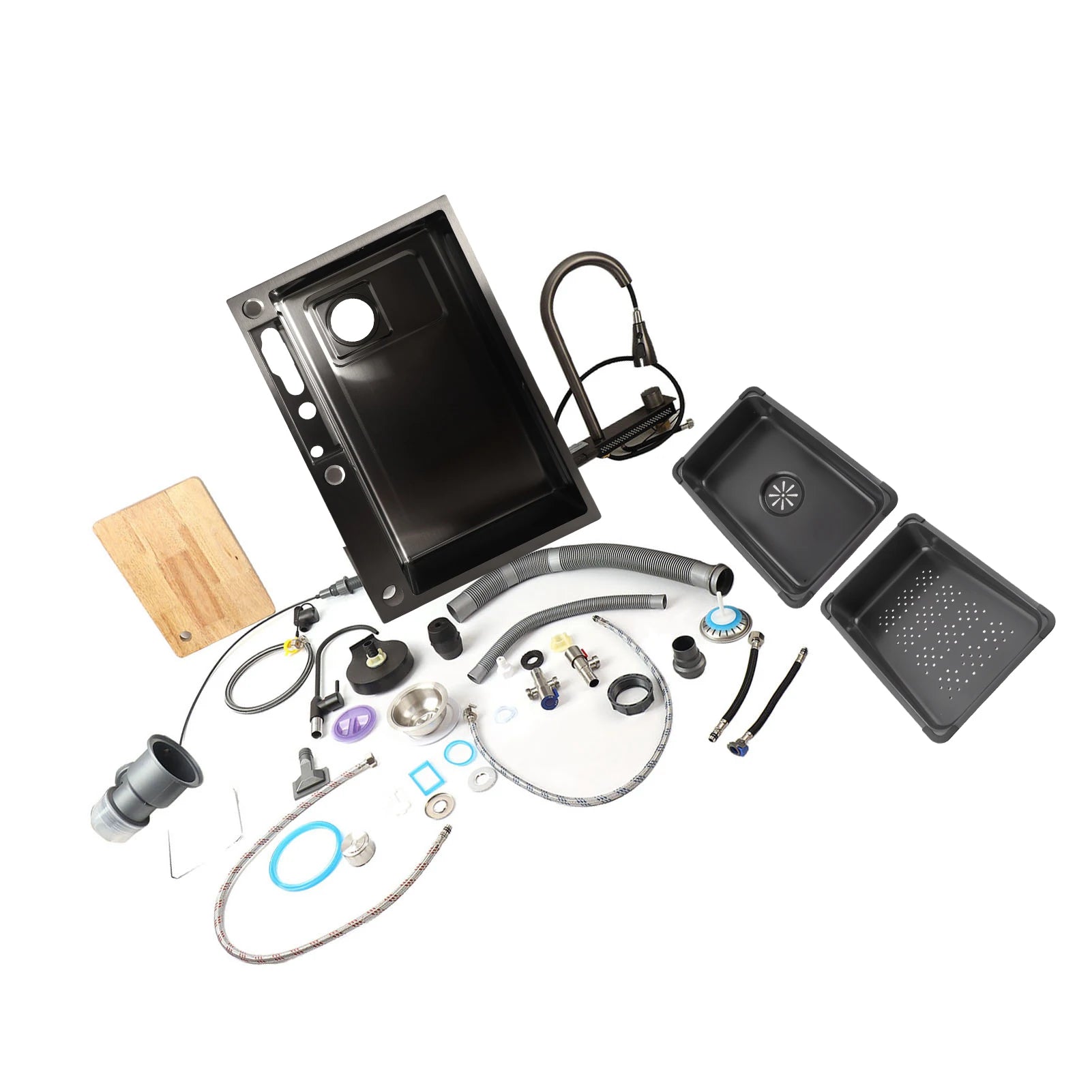 Küchenspüle unter der Theke, 68 x 45 cm, verdickter Edelstahl, Digitalanzeige, Küchenspüle, Unterbauwaschbecken