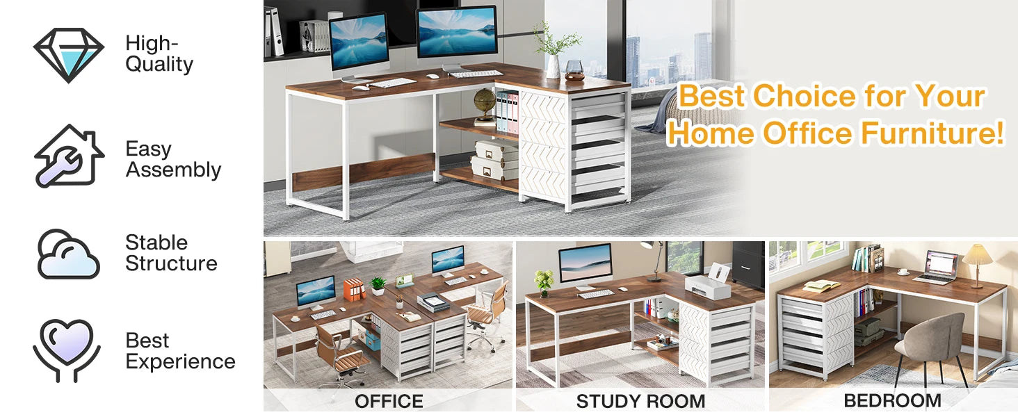 L-förmiger Computertisch mit Schubladen, 59-Zoll-Eckschreibtisch mit Regalen, Arbeitszimmer-Schreibtisch für das Heimbüro