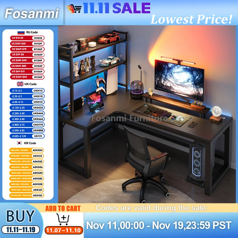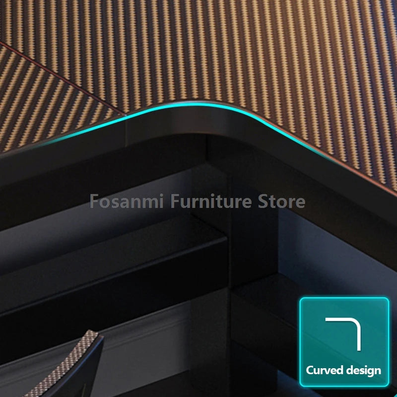 L-förmiger Eck-Gamer-Schreibtisch für das Heimbüro, breiter großer Computertisch mit Kabelloch, moderner schwarzer Gaming-Studien-Arbeitstisch