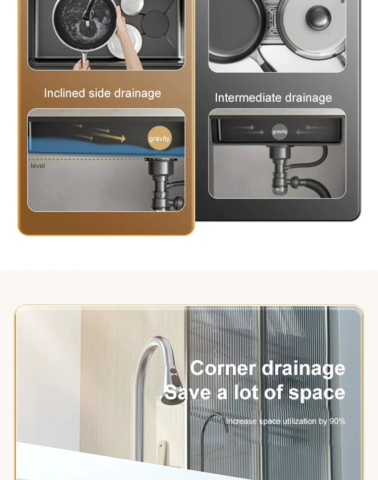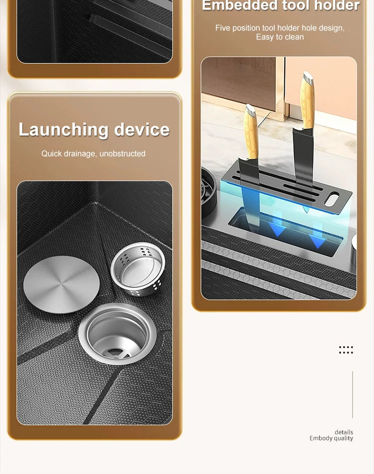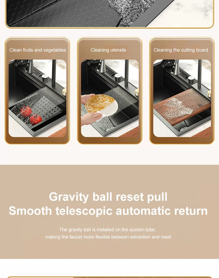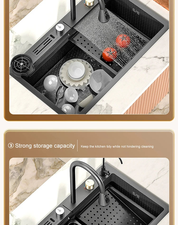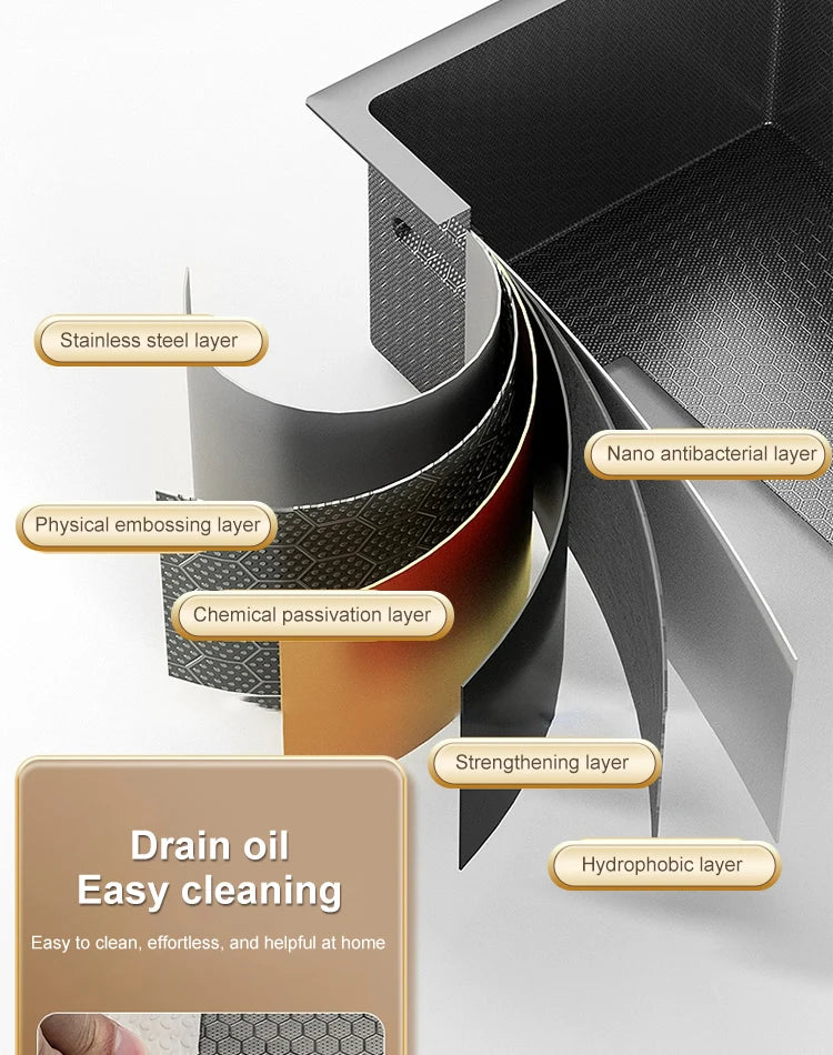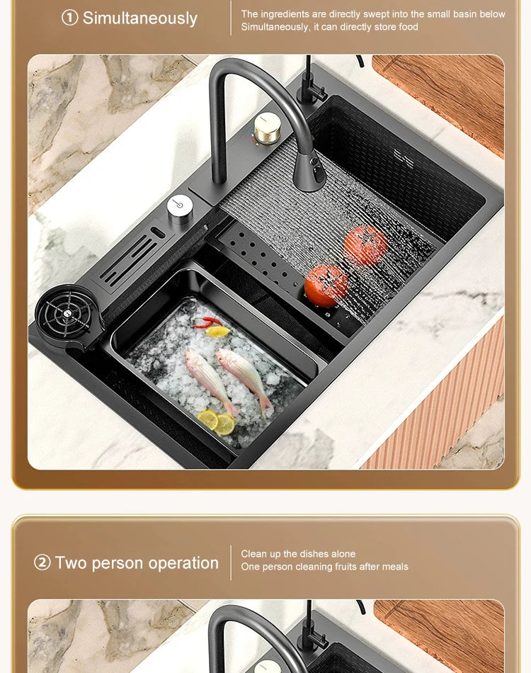 Large Single Slot Embossed Stainless Steel Waterfall Kitchen Sink Household Wash basin Dishwashing Sink For Kitchen